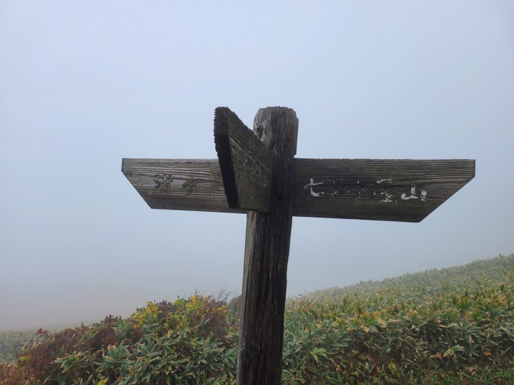 シシゴヤの頭からガスのかかる稜線ガスが取れず