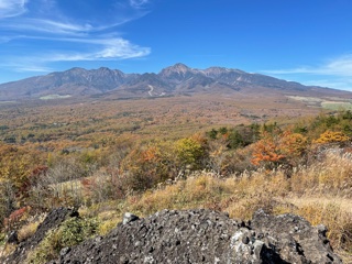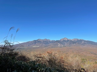 20分程で開けた場所に出た。北側方面に野辺山観測所が見え遠くに上州の山々、秩父