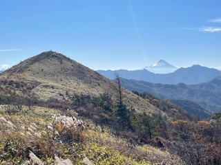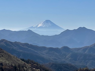 飯盛山には直接行かず、平沢山、飯盛山、大盛山と周回、天候に恵まれ、各々の頂上からは八ケ岳の雄姿、奥秩父の山々、北方には西上州の山、南方は南アルプスそして雄大な富士山を遠望する事が出来ました。往復2時間程で登れるコースや周回4時間コースなどが有り人気の山です。この日もファミリーから小学生の団体、その他大勢が登っていました。