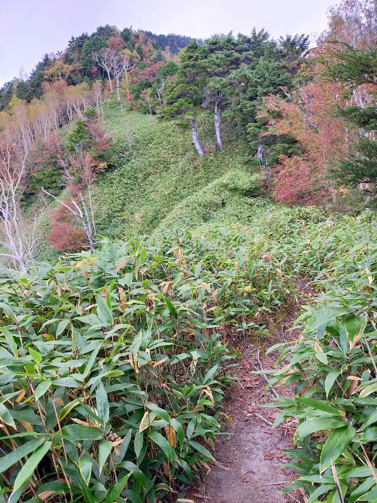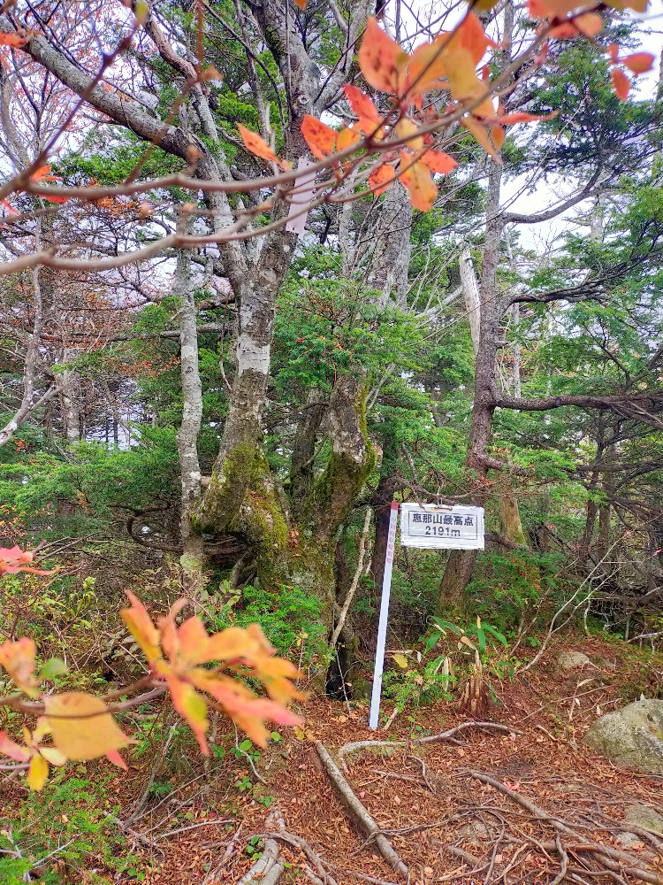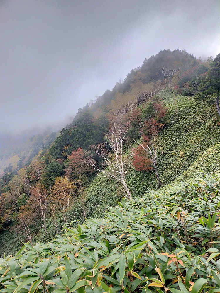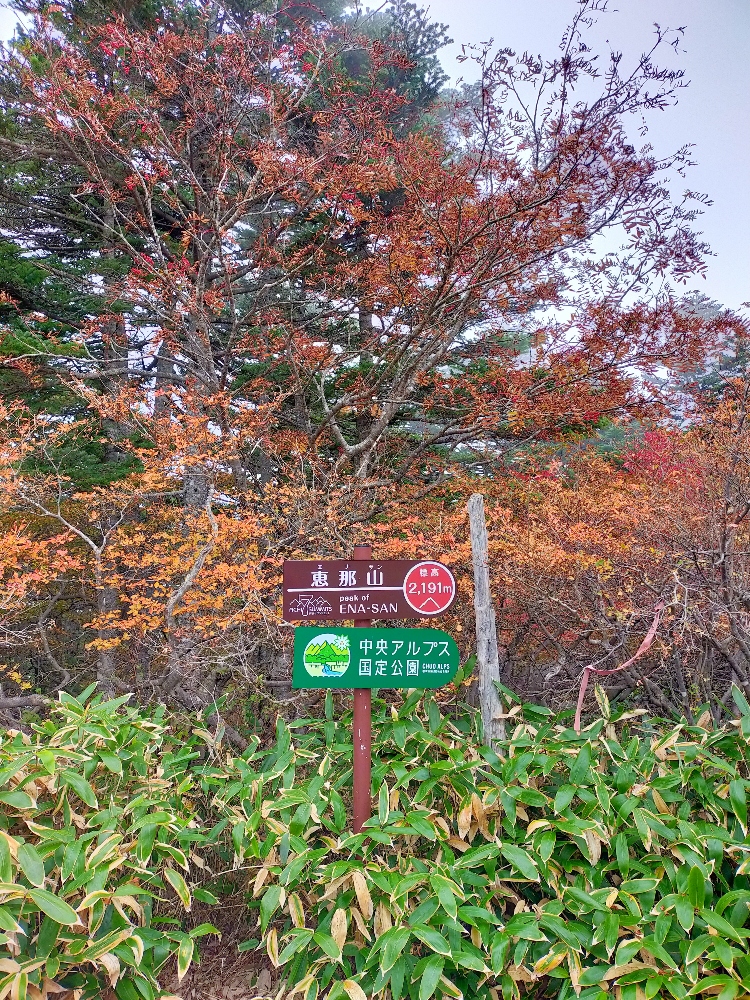 <概要>橋が流されて長野側からアクセス出来なかったが、何日か前に復旧したとの情報を得て、急遽、恵那山へ。広河原登山口から林へ。沢を渡り、稜線に取り付き見上げるも、山頂はガスの中。ただ、山頂付近の紅葉がきれいでした。