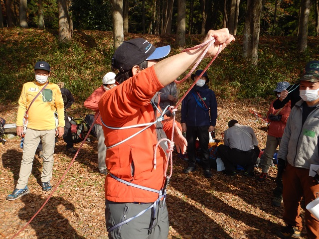 <概要>栃木山岳・SC連盟主催の講習会に参加しました。前回に次いで今回は、一般縦走路において登山中に転滑落してしまった場合の、セルフレスキューを中心に学びました。(受講者:25名。講師:7名。)