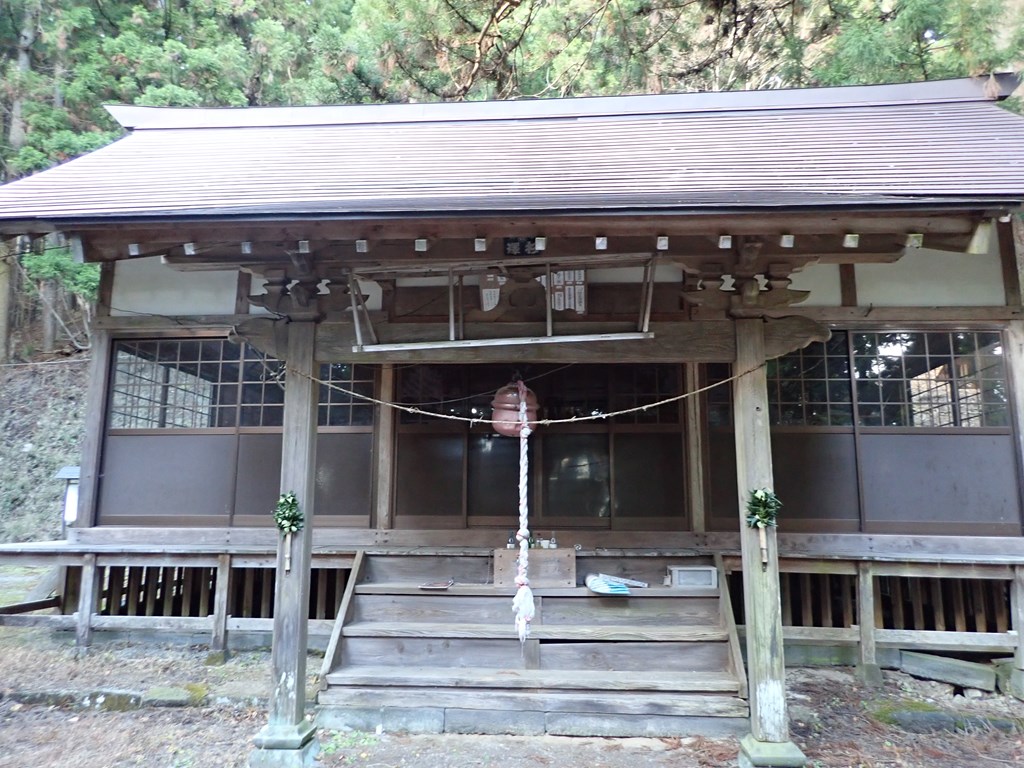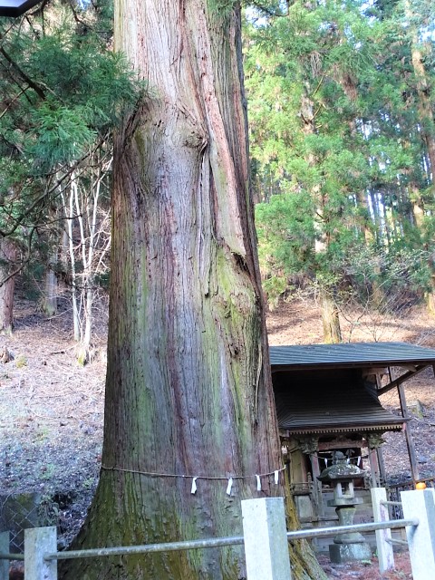 栗生神社に到着。昔はかなり立派な神社だったのだろう。踊りを奉納したと思われる舞台もあったが、傷みがひどかった。脇に杉の大木があった。樹齢1200年だそうだ。