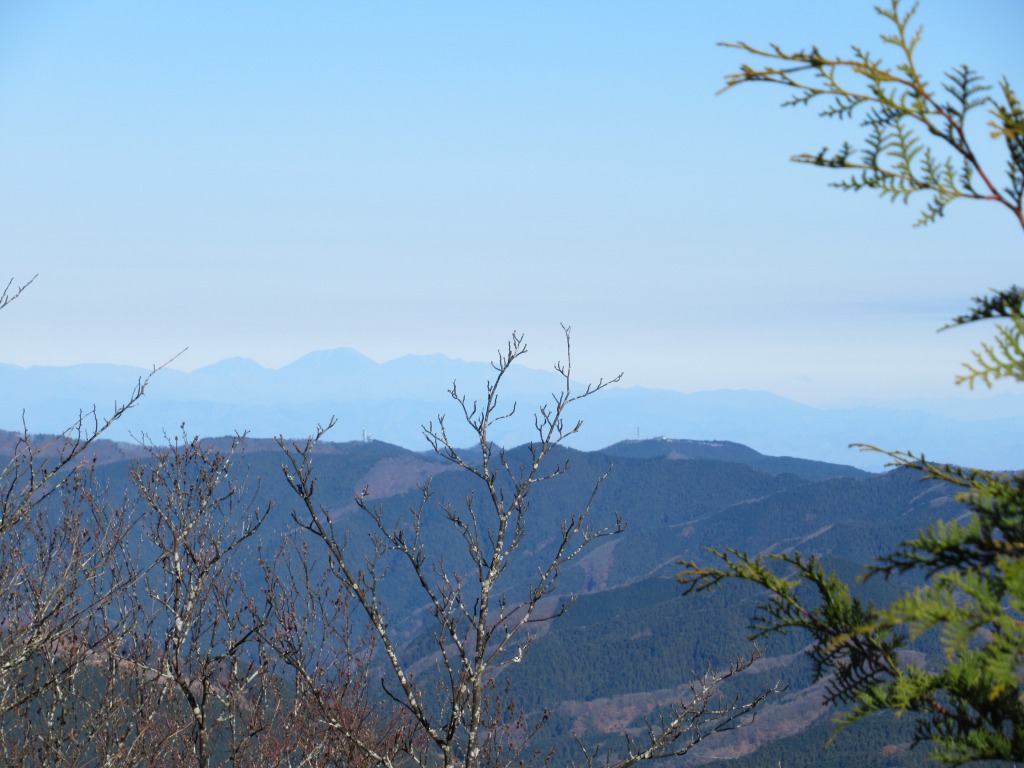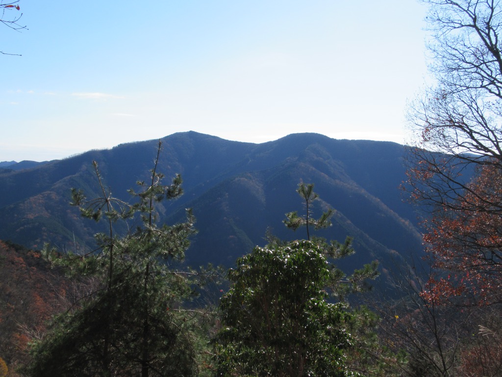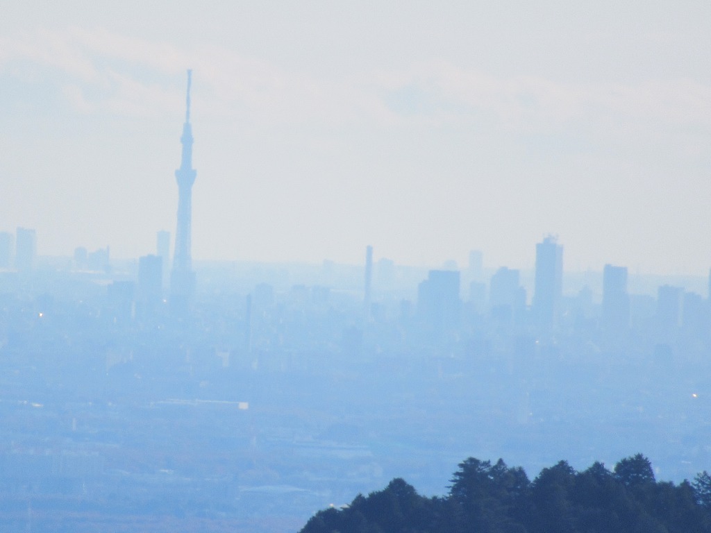 蕨入林道終点から沢沿いを急登し尾根に出ます。緩急のある岩場の痩せ尾根をさらに進み、途中、都心、スカイツリーなどを眺め、蕨山に到着するが林の中で眺望は無く近くの展望台で大休止しました。登山客は数人で北側が開け、日光連山、赤城、雪を被った武尊、谷川岳が見渡せます。ここから6km程の下り縦走となり、藤棚山、大ヨケの頭、金比羅山を経てノーラ名栗にのんびりと下山しました。林が多くすっきりした眺望は無いが、林の間から棒の折山や、紅葉の名残が見られました。残念ながら、さわらびの湯は臨時休館中で、近くのホテルの風呂も高いのでそのまま自宅に帰りました。意外と暖かく、初冬の低山縦走を楽しめました。