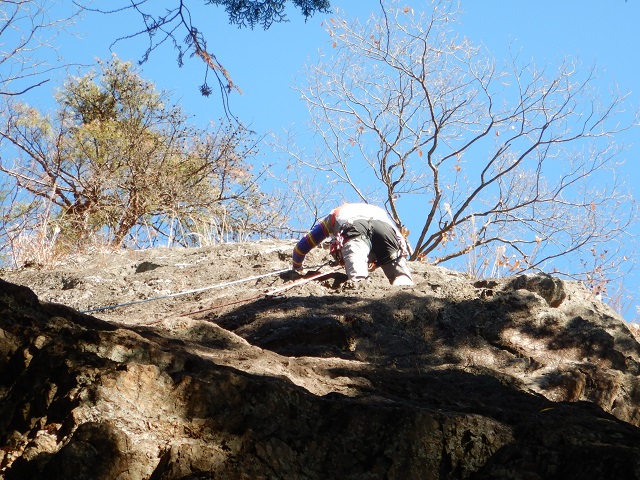 獅子落しではご夫婦がトップロープで取付いていた