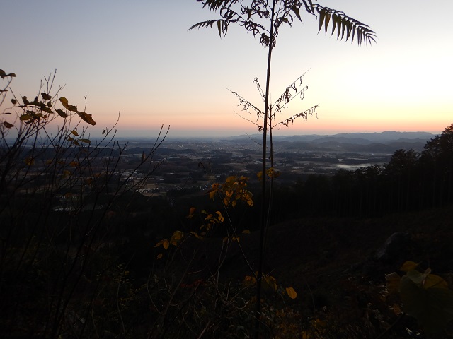 遅い昼食のあと、獅子落しの岩場を見に行き、そのまま下山、舗装道路を古賀志山Pへもどるころにはあたりは薄暗くなっていました。