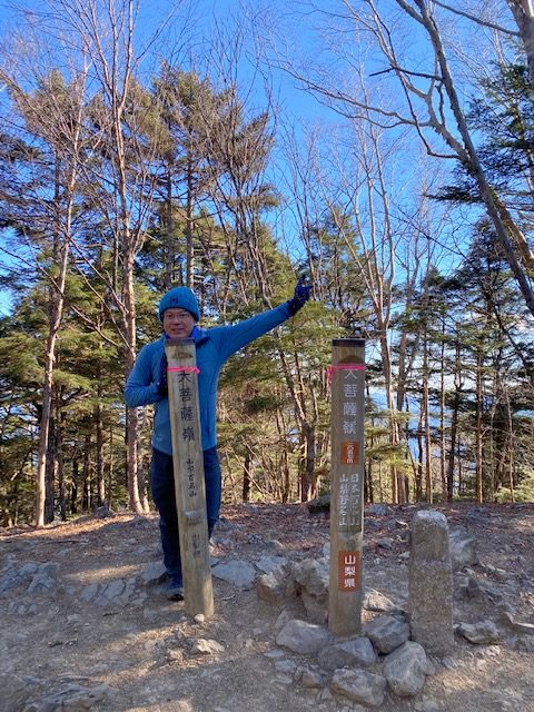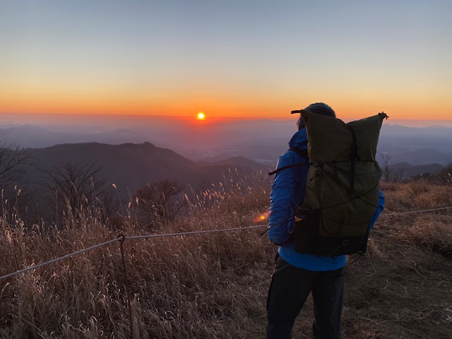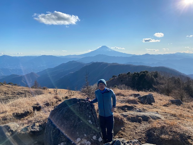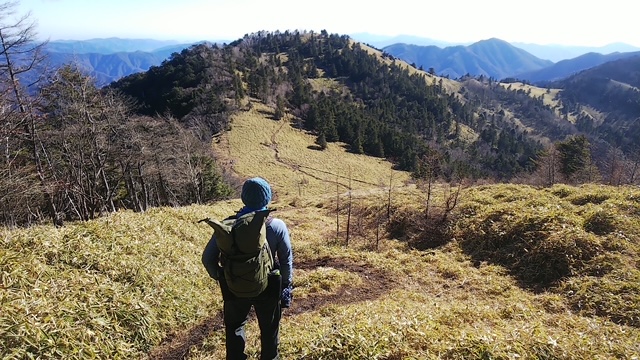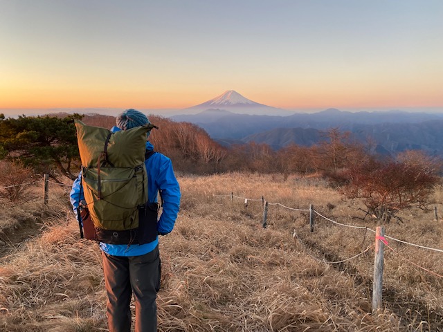 翌日も朝から晴れて、大蔵高丸にご来光に間に合う様に6時頃出発。大蔵高丸から見たご来光と富士山の荘厳な佇まい、南アルプスオールスターズにテンションが上がりまくった。寒かったがこの山行で一番感動した景色。ハマイバ丸、滝子山などの秀麗富嶽12景3つの山では富士山、南アルプスの山々が見えて、笹原や苔むした道などいろいろあり、多少のアップダウンはあるものの、気分の良い縦走路である。ただし人の踏み跡が薄いのでよくみていないと外す恐れあり。ハマイバ丸から滝子山にかけての下り道の一部に極めてよく滑る土がむきだしの急な下りあり。滝子山では数人のハイカーとあい、南陵から上がってきて、「かなりエグい」と話していたカップルがいて、「下れそうですか」ときくと、「全くお勧めしないね、上りならともかく下りは危険だと思うよ」といわれて、予定通りすみ沢沿いに下る。滝子山からしばらくはめちゃくちゃ広い気の無い尾根道で、そこからしばらくすると上がってきた登山者が「クマの親子に会った。気をつけてね」というので、クマ鈴の他に大音量で洋楽をかけながら下りてゆくと、もう一人の登山者とすれ違い、その人も見たと言うので、本腰を入れねばと覚悟していた。しかしラッキーなことに糞はあったものの、親子には出会わず、ほっと胸を撫で下ろし、その頃にはいつの間にか林道まで下山していた。そこからデポした車まではあっという間であった。2日間にわたり、きれいに見え続けた富士山、またこようと思ったコースでした。