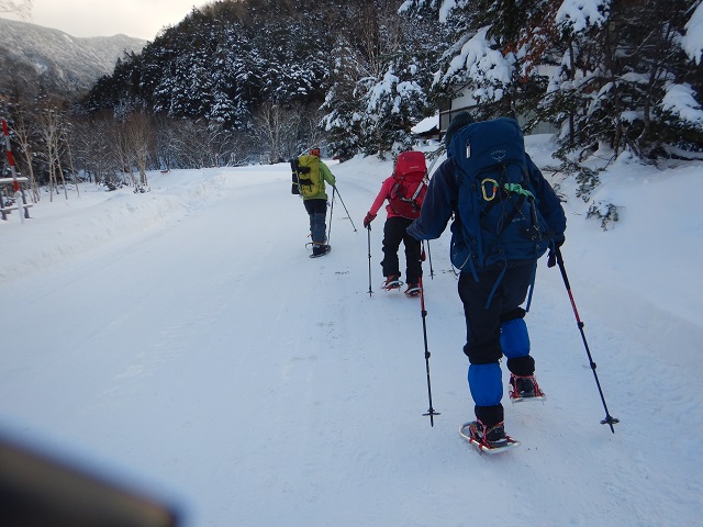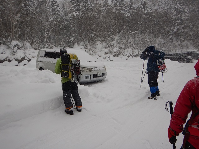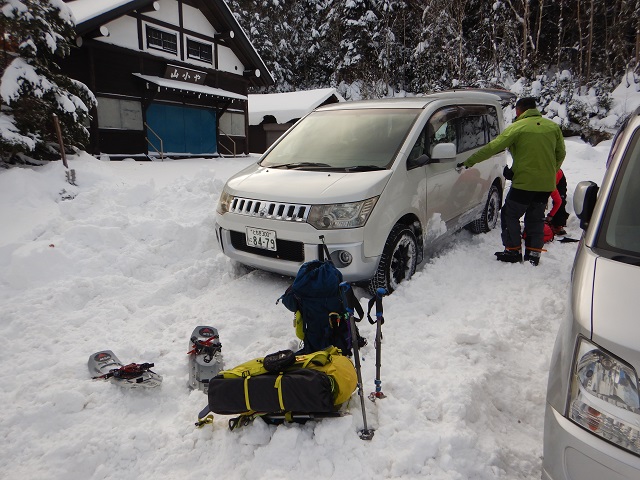 菅沼の駐車場に到着 久々の雪山山行は疲れました。