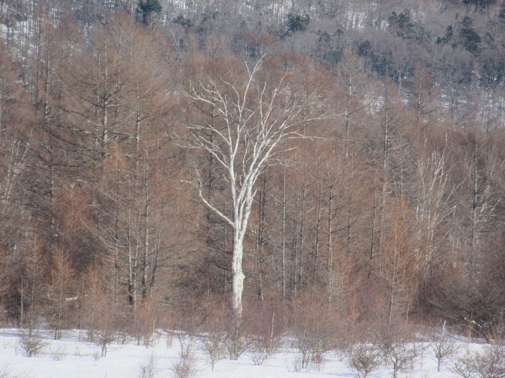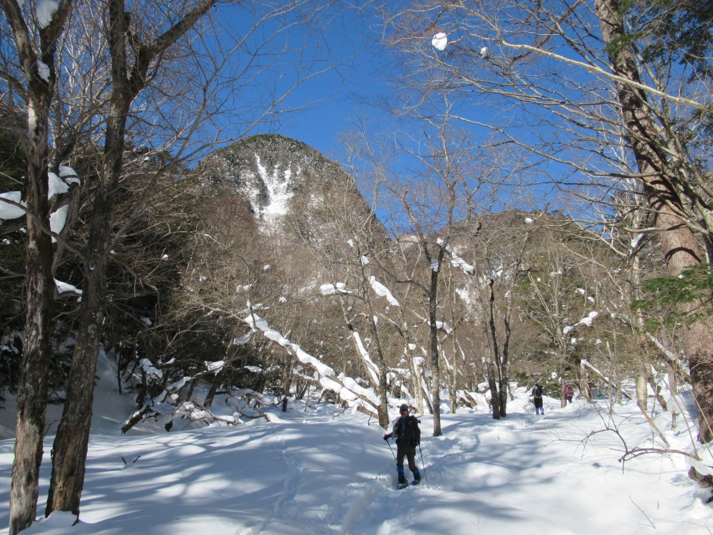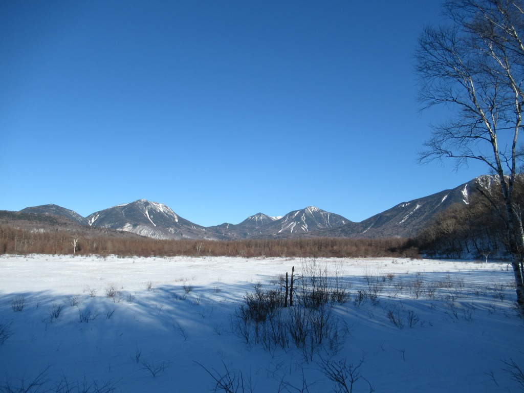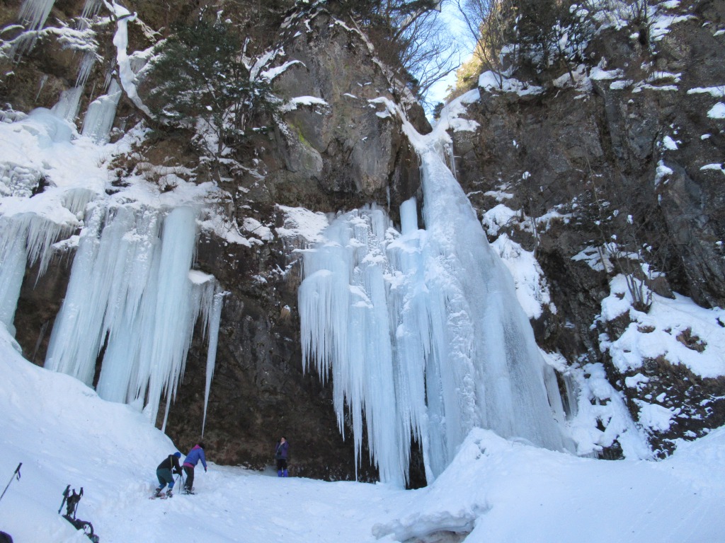 <詳細報告> 日光戦場ヶ原の庵滝が凍ったとのことで、天気も良いので訪れてみました。先人の踏み固められたトレースを期待して少し遅めの出発、スノーシューを担いで行きましたが使わず、アイゼンとつぼ足だけで済みました。風も無く穏やかで気持ち良い天候の下、戦場ヶ原脇の平坦で樹林帯の雪道を進み小田代に到着、日光の山々と小田代の貴婦人が綺麗に見渡せました。弓張峠からは外山沢沿い緩傾斜の雪道を詰め、所々柔らかい雪を踏み抜きますが、こちらもつぼ足で十分でした。庵滝周辺は数名の先客で人は少ない。滝の中心部は水の流れる音が聞こえるものの、全面凍っており、滝裏まで行き氷柱も見られました。滝周辺は日陰で寒いので、少し下の陽だまりで大休止し往路を戻りました。 天候にも恵まれ、真冬の日光の山々、見事に凍り付いた氷瀑を楽しめました。
