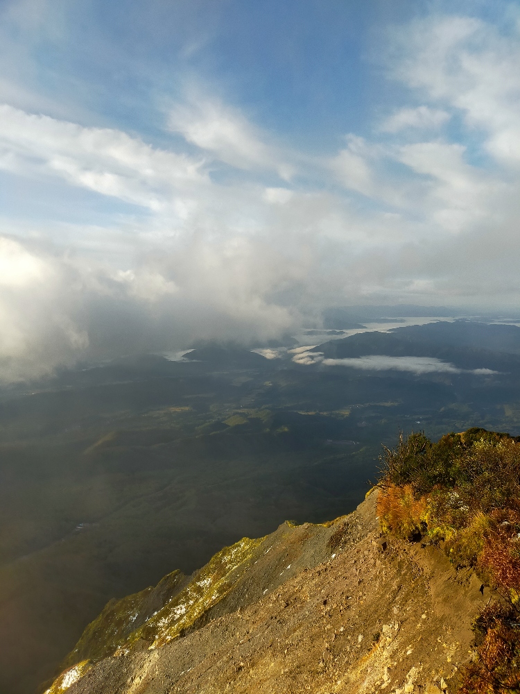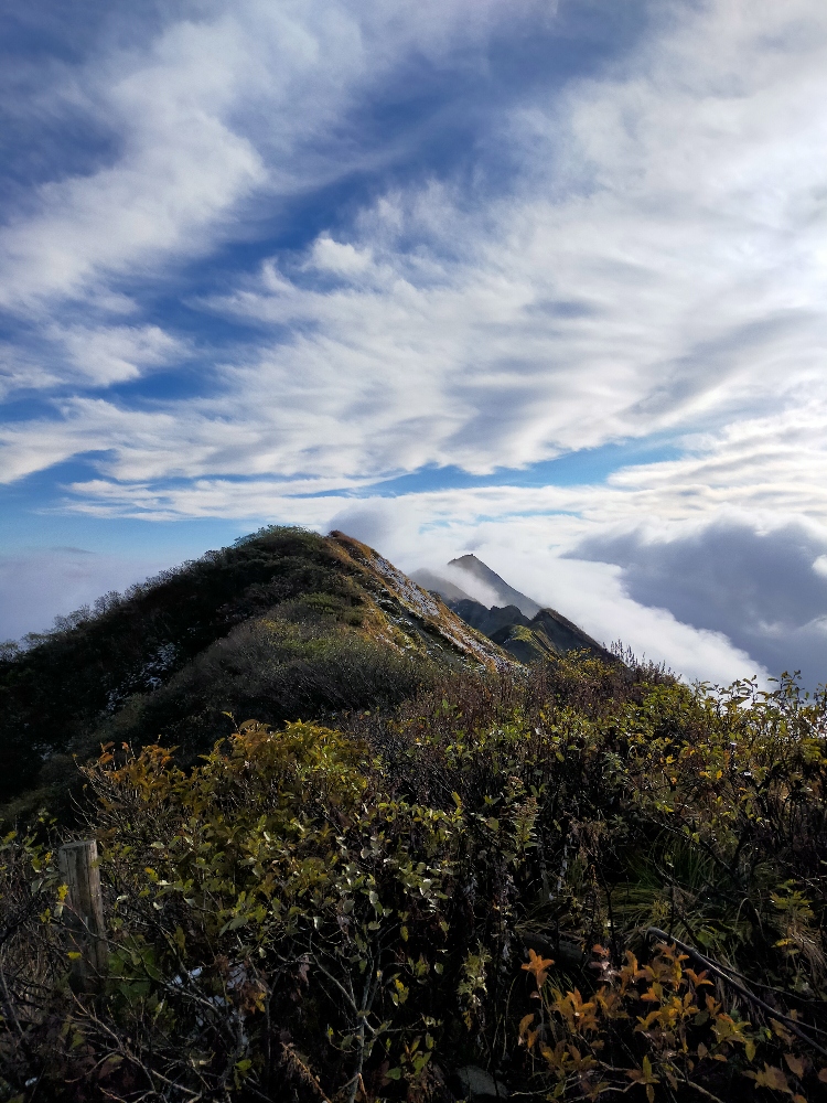 大台ヶ原から鳥取大山へ大移動。避難小屋泊用に食料を買い登頂開始。6合まで晴れていて、多くの下山者とすれ違った。樹林帯を越えてからは、雲の中。眺望はきかない。山頂に積雪あり。明日、晴れることを祈って伯耆大山山頂小屋で一泊。小屋は新しくきれいだった。翌日、風も強く。日の出を期待したが、きれいな日の出は見られなかった。それでも、風が強く。眺望も刻々と変わり。遠くまで見渡せ。山頂は植生保護のため制限があるが、何人かの登山者は、それを平気で超えて歩いてるのは残念だった。山頂を長く楽しんだ後、下山。大山寺で芋汁をごちそうになり、護摩を見学できた。