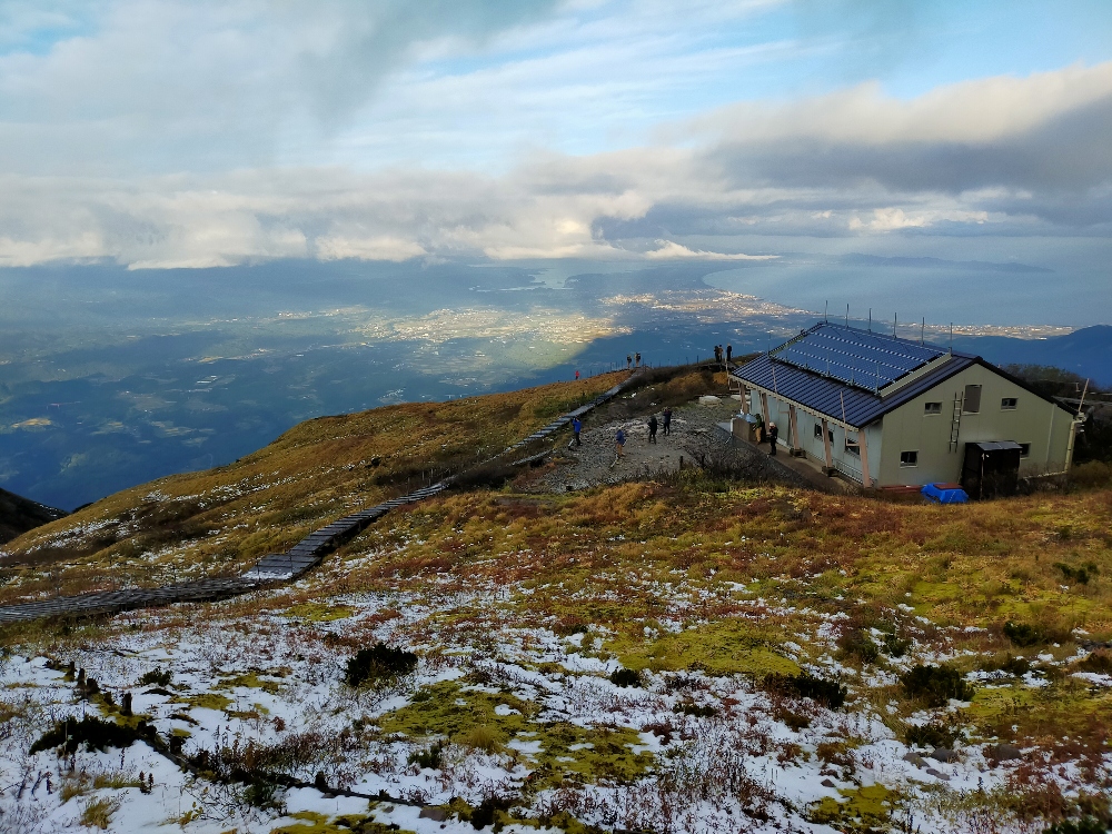 <概要>伯耆大山山頂小屋で一泊。紅葉が始まる前に降雪。日本海がきれいに望めた。
