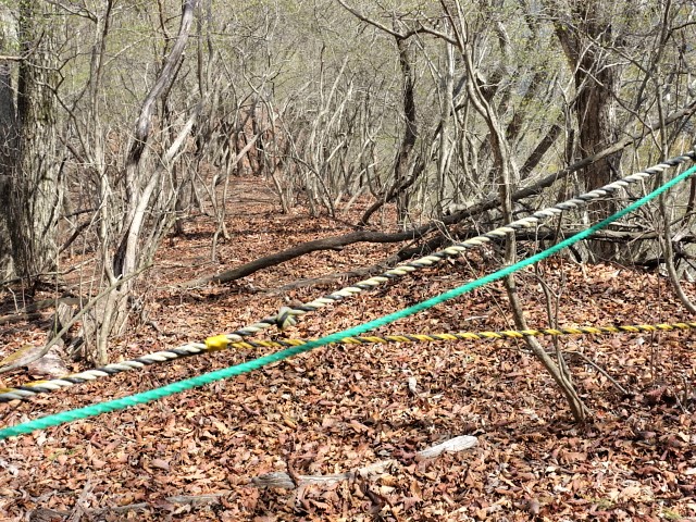 合峰入口にロープ