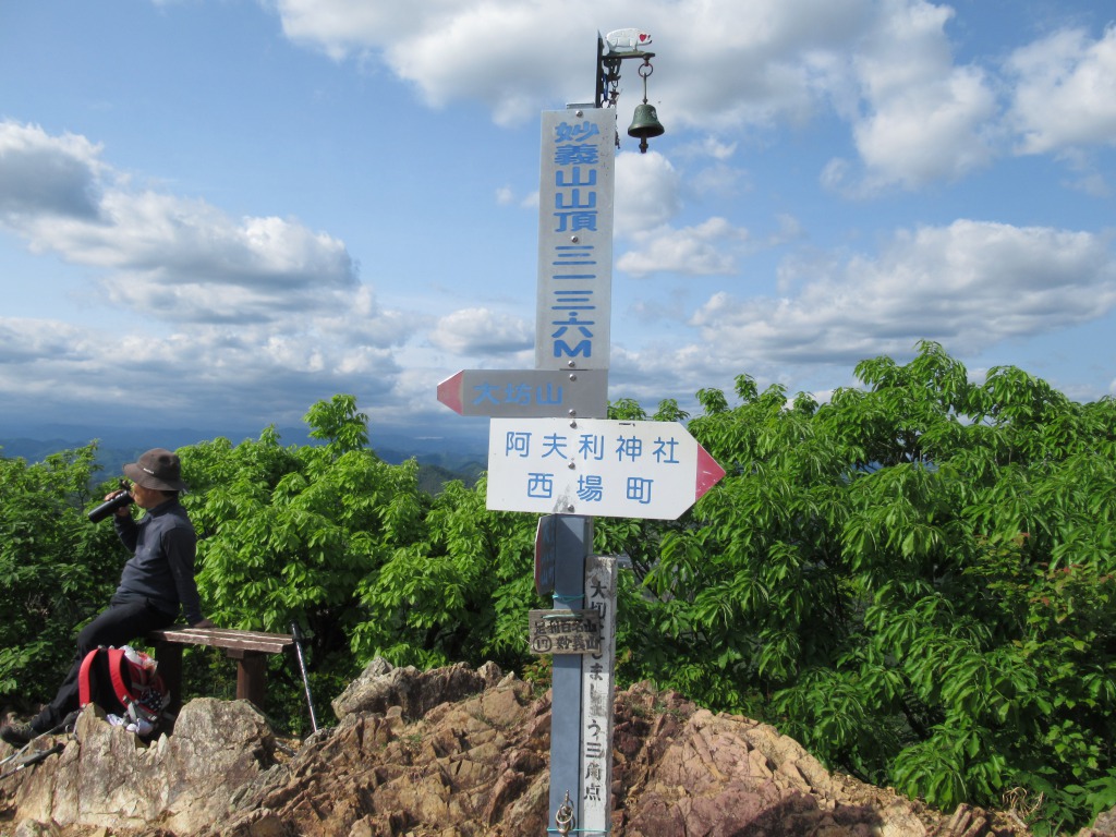 短時間で登れるのでまだこれから登るハイカーも居り、阿夫利神社から1時間足らずで妙義山に到着、レンゲツツジも咲き、日光方面は雲が出ていましたが、赤城、浅間、秩父の山、都心方面はよく見えました。