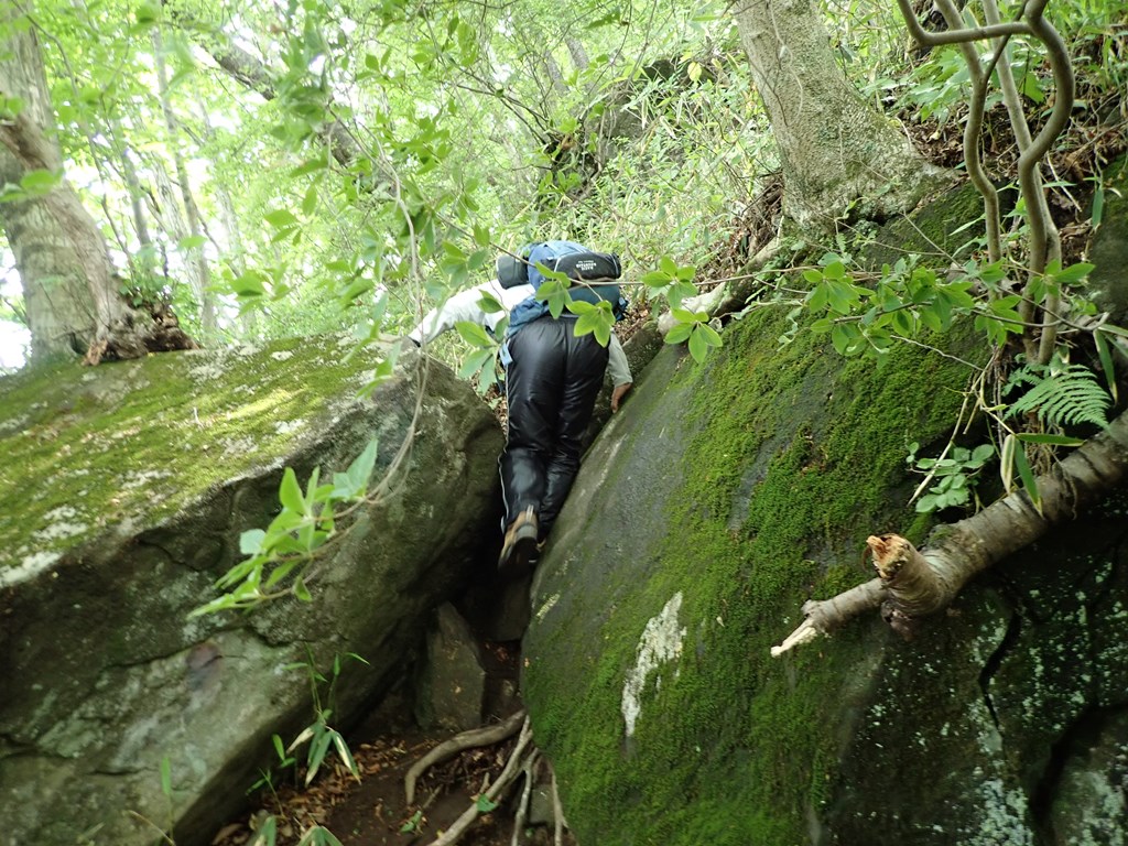 薬王院横をくりさんの軽トラで登り、林道鬼ヶ作線の起点の脇に駐車した。林道鬼ヶ作線ではなく、酒寄線に進むと10分程で終点となり、そこから尾根に登っていった。到達した尾根はくりさんによると「みかん尾根」というらしく、近くの尾根同様に岩の多い尾根だった。