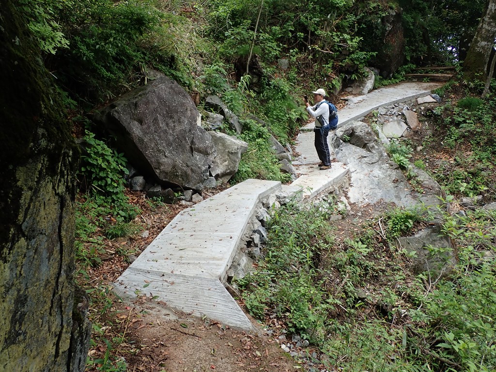 研究路は木の階段が朽ちかけていたり、滑りやすくなっている。そこさえ注意すれば歩きやすい。男体山の南東部に落石の為長らく通行禁止になっていた場所が通れるようになったらしいのでそちらへ行く。登山道は新しく作られて、上部の崩落していた大岩はコンクリートで固められていた。御幸ヶ原に着くと大勢のハイカーで賑わっていた。そのまま女体山へ直行して、山頂からの風景を楽しむこともなく、下山開始。女体山から東への下りは久しぶりだ。岩場を慎重に下るが、濡れている岩が多く滑りやすい。ハイカーもどんどん登ってくる。平日の筈なのだが、コロナ籠りに飽きて出て来た人が多いのだろう。ブナ林の辺りで右に入り弁慶茶屋跡へショートカット。そこからつつじが丘へ下る。ツツジはほぼ終わっているが初夏の花が少し見られた。