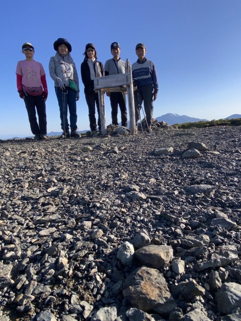 <詳細>皆さん朝は早い。4時ごろから騒がしくなり窓越しにイザルガ岳山頂に人のシルエットが見える。私は小屋の外でご来光を拝む。6時出発目標に支度をして下山開始。イザルガ岳に立ち寄る。雲一つない青空と360度の展望。富士山 聖岳への美しい稜線 駿河湾も見える。苦しい山行であったがここでの展望が救いだ。ここがなかったらほんとに苦行の山でしかない。景色を目に焼き付け名残惜しく下山開始。あえぎながら登ってきた急勾配を下るのみ。下山は早いが軽くなったとはいえ荷物と急斜面に踏ん張る足が利かなくなる。行きは気づかなかったが面平の平地にテントが数張り張ってあった。昨年の山渓に紹介されていた南信州山岳文化伝承の会顧問の大蔵喜福さんを中心に光岳と遠山郷つなぐ試みとしてのキャンプ場である。面平からの急斜面に閉口しながらやっとの思いで易老渡へ降り立つ。1時間の林道歩きを経てゲートに出てやったー!達成感!まだ車がかなりある。光岳は私たちが最後の方だったのでほとんどが聖岳に行ったようだ。道の駅の温泉が休業してしまったので飯田城温泉天空の城三宜亭本館(800円Jaf会員600円)で汗を流し帰路についた。