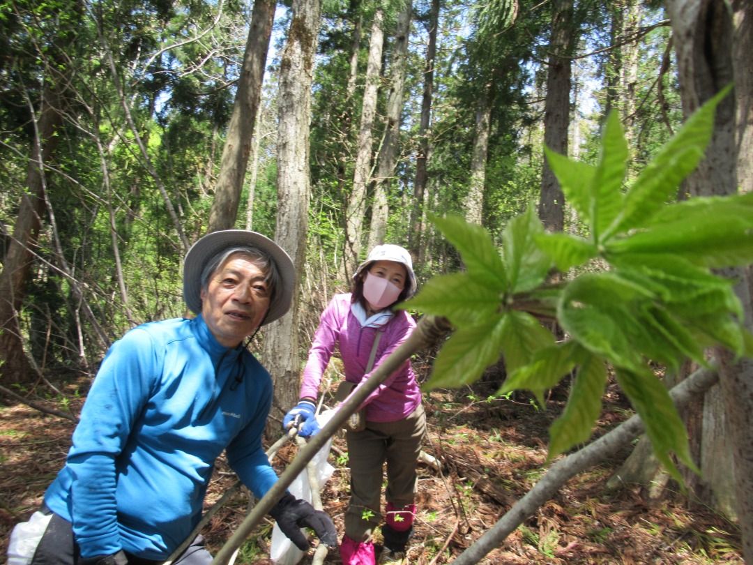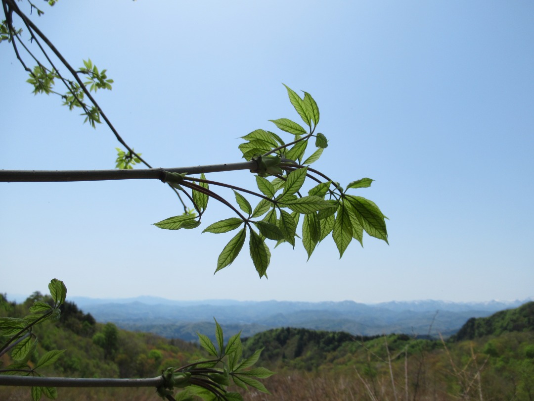 <概要>コシアブラ下見先発隊山行、西会津高陽山中腹に行ってきました。上の方はまだ新芽の出始めで数日後には葉が出るかと思われます。中ほどから下の日当たりの良い所が収穫期ですが、奥の方まで人の踏み跡が多くあり、可成り摘み採られていました。