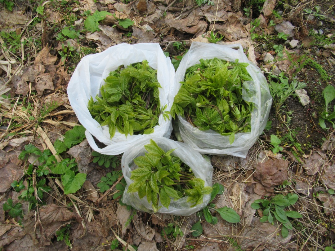 <詳細報告>本日の主題 ”コシアブラの状況報告”です。例年の伐採地から上の辺りは新緑も進み、ヤマザクラも終盤、高陽山山頂の方はまだ冬枯れといったところです。昨年のスタート地点には雪も少々ありますが少な目、ここから東側の雑木林に入りますが、まだ新芽が多く数日後には葉が出るかと思われます。可成り奥の方まで人の踏み跡があり、摘み採られた痕跡多し、真新しい てんこ盛りの熊の糞もあり要注意です。伐採地に近い中程の日当たりの良い所が適期、懸命に枝を曲げ収穫しました。日陰はまだ芽吹いたばかり、下の方は葉が多くありますが木が高く太いので曲げられません。梯子かツリークライミングツールが必要か?本日の収穫は中ポリ3袋弱でそこそこ、夕飯に食しましたが香り抜群でした。