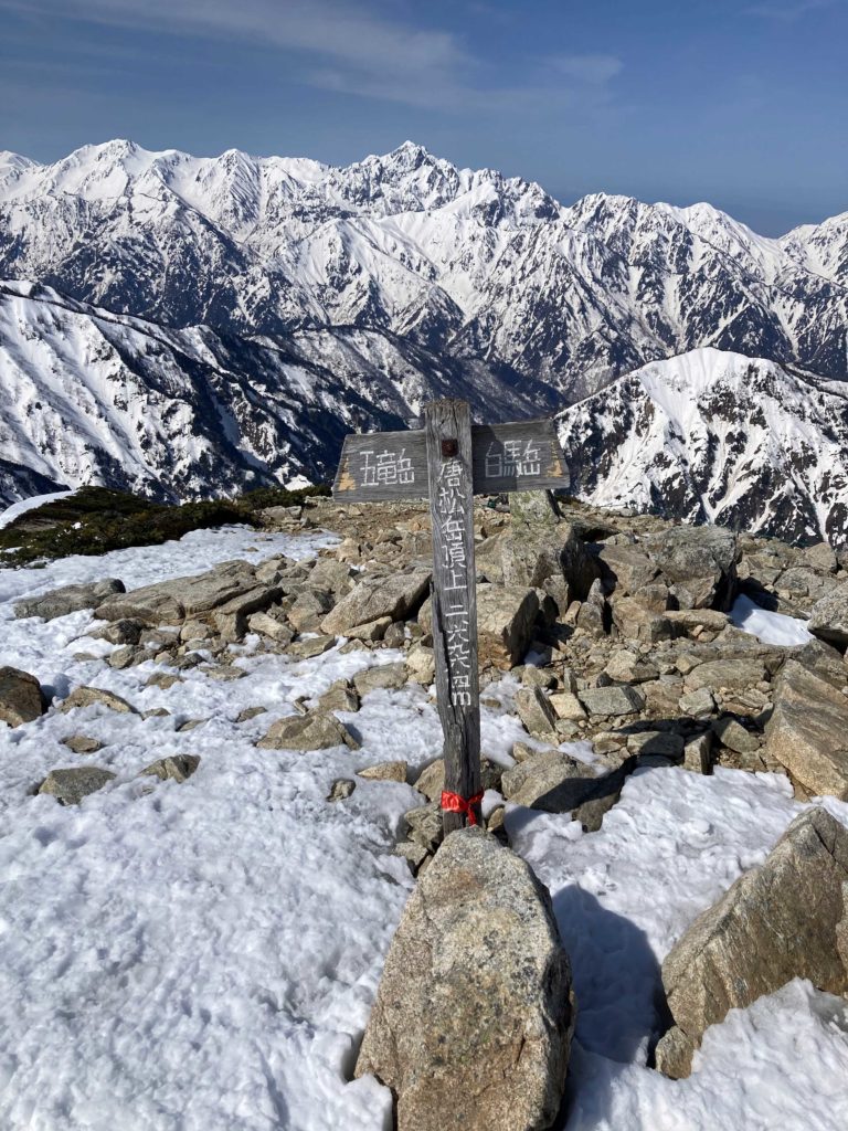 <詳細報告>前日に白馬を照らす朝日が綺麗だと聞いたので、4:30に山荘を出発。星も見えているが、薄曇り。外気温は、手元の温度計で5℃。今日は暑くなりそうだ。八方山で朝食、ここで御来光みるが、もっと赤くなると期待していましたが、それほどでもなく期待外れでした。八方池を越えたあたりアイゼンをつける。雪もしまっており、歩きやすい。唐松岳の山頂、直前で雷鳥をみる。真っ白な雷鳥で人を恐れる様子もなく2mくらいに近づいても逃げる様子もない。しかたがないので、こちらが迂回して先に進んだ。唐松岳山頂は、絶景の一言。雪を被った五竜、劔がよくみえた。この時点で気温は、10℃、だいぶ雪も緩んできた。9時には、リフトが動き出すので日帰り組が押し寄せてくる。早々に下山。下山は、暑く、雪も緩んでズルズルでした。登りの人に道を譲るため脇にずれると、ひざまで潜る。下山は疲れましたが、山行中は、天気に恵まれ良い山行となりました。