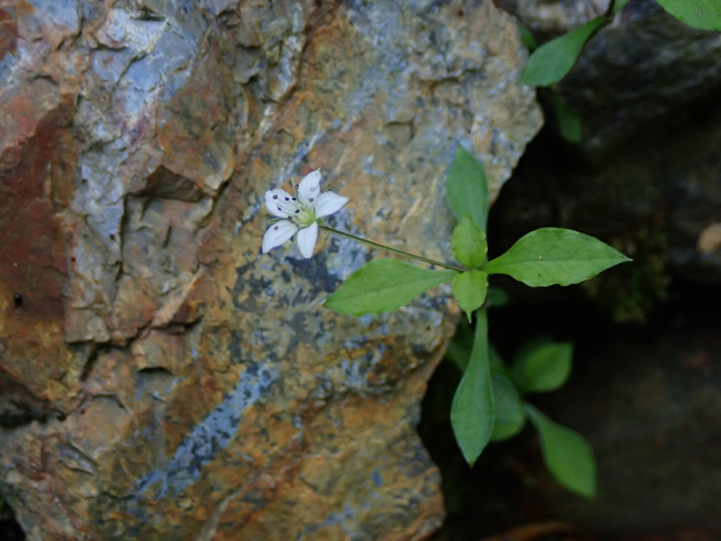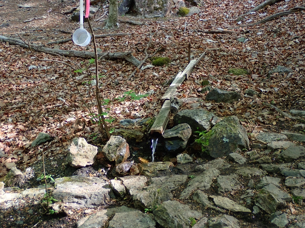 沢沿いの登山道は歩きやすい。以前は道沿いに多くの花が見られたが随分少なくなっていた。所々に鹿食害を防止するネットがある。昨年も見たが、その時よりネットが増えているような気がする。水場を過ぎて少し傾斜が出てくるとツツジの乱舞の筈なのだが、ミツバツツジが少し咲き残っているだけで、ヤマツツジは数輪しか見なかった。肩の広場で一休み。数組の登山者が休んでいた。