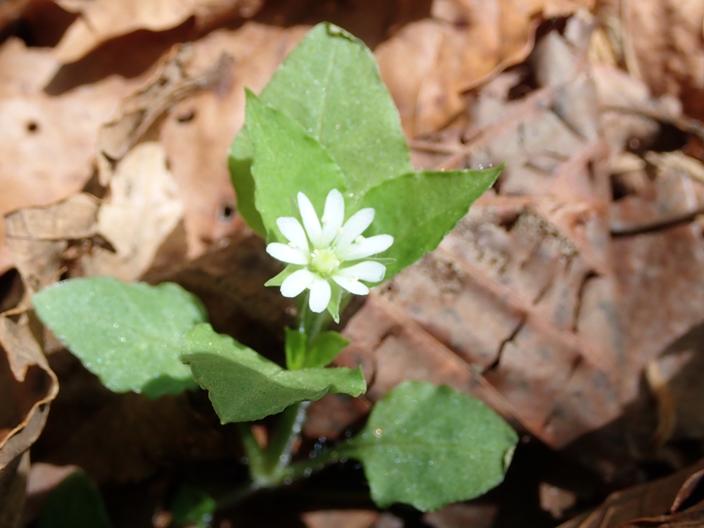山頂に着いたが霞んでいて日光連山はかすかに見えるだけだった。山頂は日当たりが良く暑いくらいなのですぐ椚田峠へ向かった。急傾斜地のイワカガミはまだ花の時期では無いが株も少ないのが気になる。峠に下りてカッコソウ群生地へ。きれいなピンクの花を見ることができた。スミレも何種類か咲いている。一番下の保護柵ではルイヨウボタンが咲き始めていた。峠に戻って一休み。