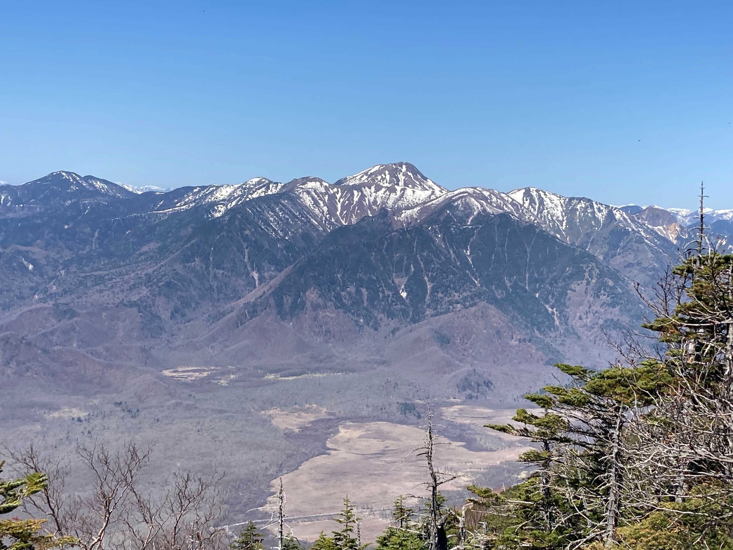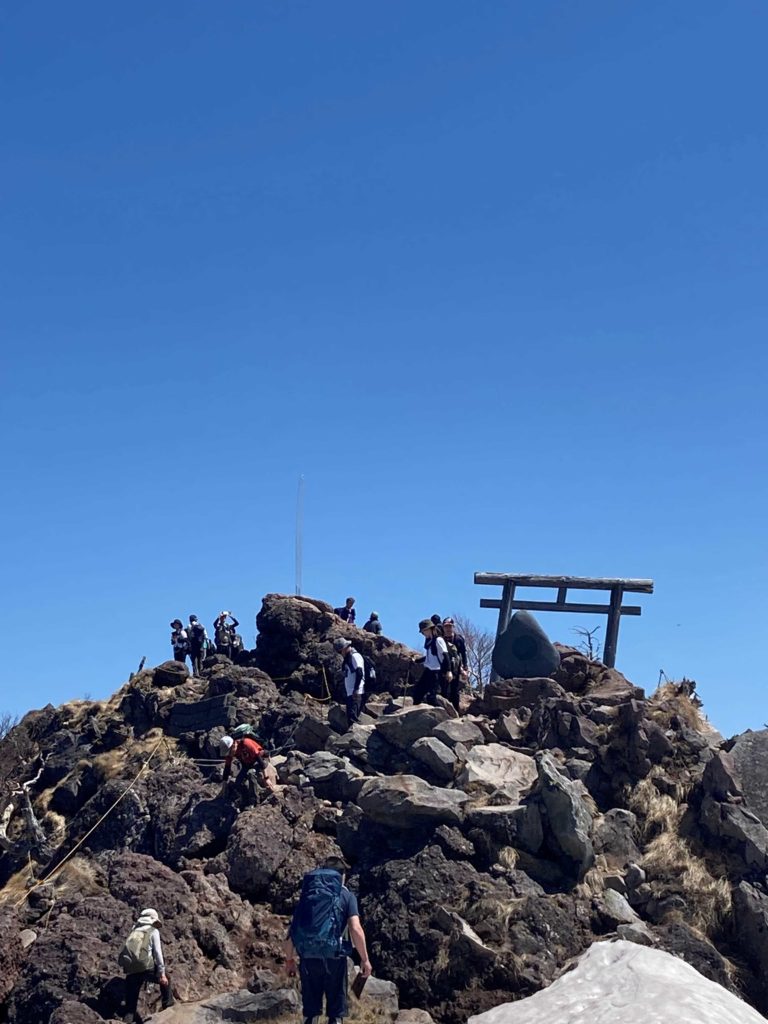 <詳細報告>GW中は、高速道路も混むだろうと思い、家を5時半に出発。道は思いのほか混んでおらず、予定よりも早く到着。二荒山神社の駐車場は、下の駐車場は満車で一番上の駐車場は1/3程度でした。7時に二荒山神社をスタート、登山届を出すのに数名の順番待ち、この時点で人が多いという印象です。気温は、手持ちの温度計で18℃、朝7時にしては、高い気温。人も多いし、気温も高いのでのんびりと登り始める。8合目までは、ほぼ無風で暑さとの闘い。小まめに水分補給をする。8合目を過ぎると残雪があり、若干、空気が冷たく感じる。残雪があるとの情報を得ていたが、とくに問題となるレベルではないのでそのままいく。日光白根が見えてきたが白根は、まだまだ雪が残っている。男体山頂上には多くの人。少し離れたお気に入りの太郎山神社で少し早めの昼食。二荒山神社に下山した時の気温は、25℃暑い日でしたが、頂上からの眺望に恵まれ良い山行となりました。