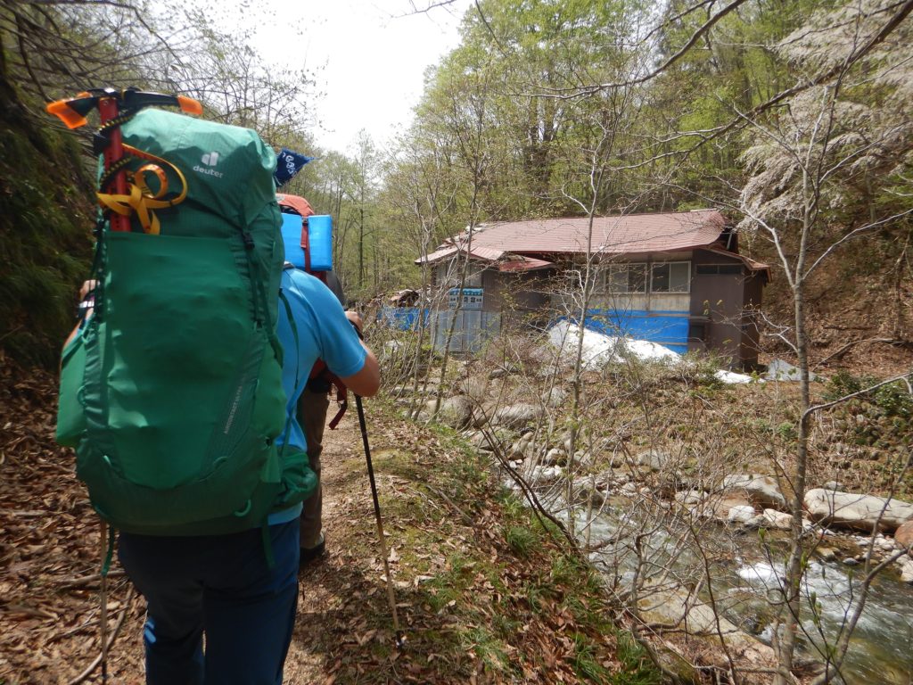4/30鳥原小屋を後にする