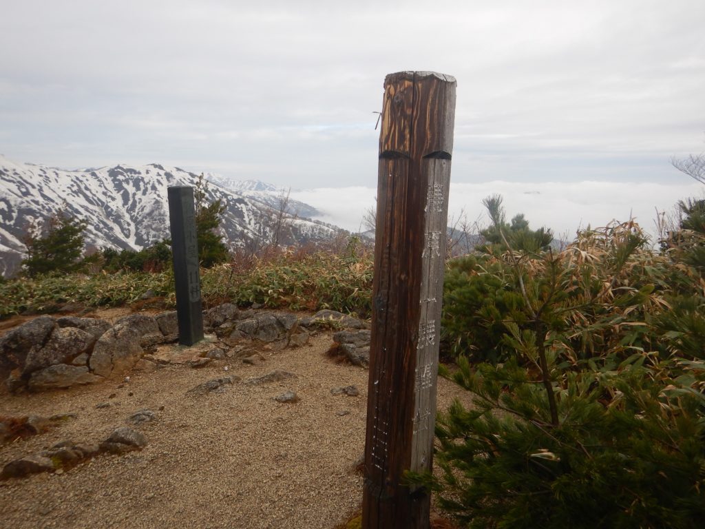 <概要>大朝日岳山頂はガスで、視界はありませんでした。登山者は少なく、静かな山行ができました。
