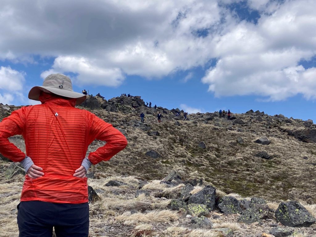 <詳細報告>5月4日は、気温が30℃近くなるとの予報でしたので2000m付近までロープウェイで行ける日光白根山へ。戦場ヶ原付近で車の温度計で15℃、4月28日に男体山に行った時と同じ温度。金精峠を過ぎて丸沼高原に着くと13℃くらいこの時期の日光にしては気温が高い。8:30にチケット売り場に到着。天気が良いせいか、チケット売り場にはすでに長蛇の列。チケットを購入するまでに30分以上かかりました。山頂駅に到着し日光白根山がよく見えたので山頂からの眺望も期待できそうです。神社から残雪があり、ここでチェーンアイゼンを装着。踏み抜きを心配していたのですが、人も多いせいか、雪は踏み固められており歩きやすかったです。森林地帯は、10℃くらいでちょうどよい感じ。森林限界を過ぎてからは、流石に風は冷たくなってきましたが登っている時は、この風が心地良く感じられます、山頂には、多くの人が見えたので、山頂に行く前に奥白根神社を右に入ったあたり、6月にはコマクサが咲くところで昼食。のんびり昼を食べてコーヒーを飲んだりしていたのですが山頂は空く気配がないので山頂へ、山頂は渋滞で写真を撮って即下山。 天気に恵まれ良い山行となりました。