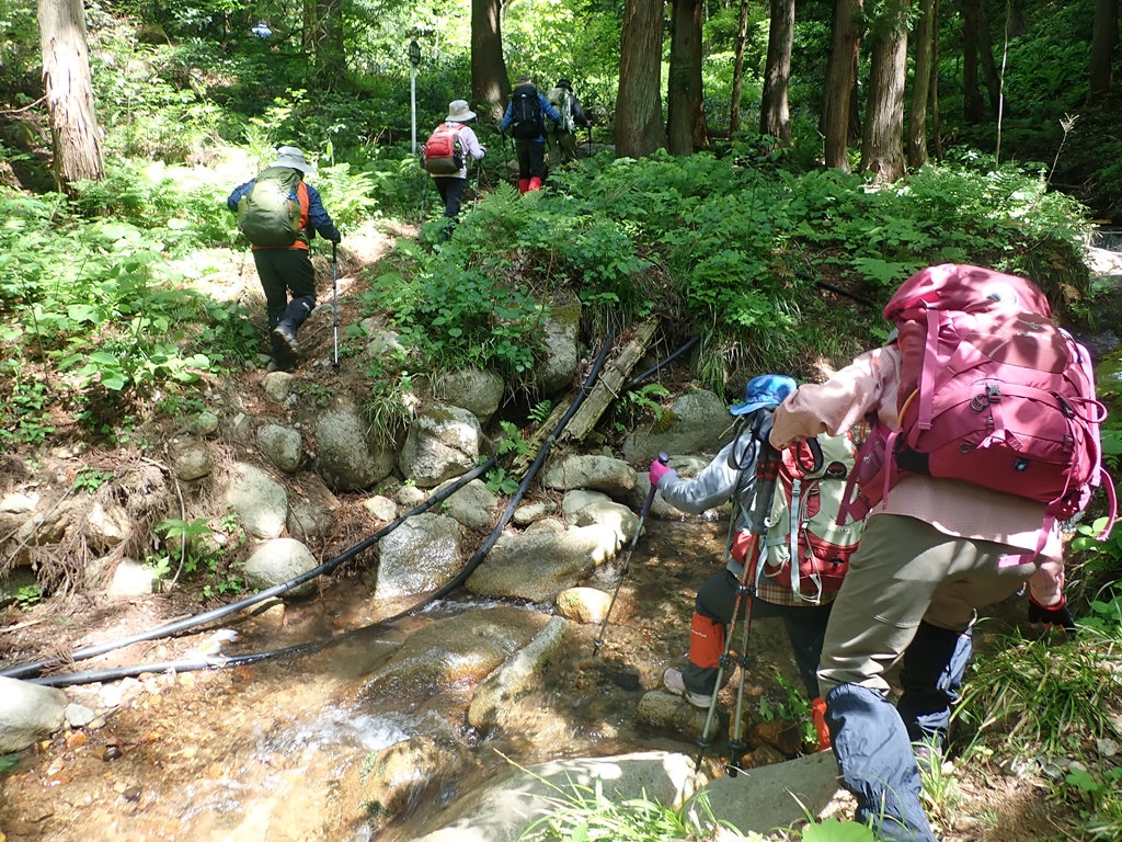 十五夜の沢看板の手前で大休止。ここの水は実に美味しい。その上の伐採地ではワラビを採っている人の声がした。その辺りではクロモジが多いのだが、今年は花の時期を終えようとしていた。今回は急登を少し登ったところで引き返した。