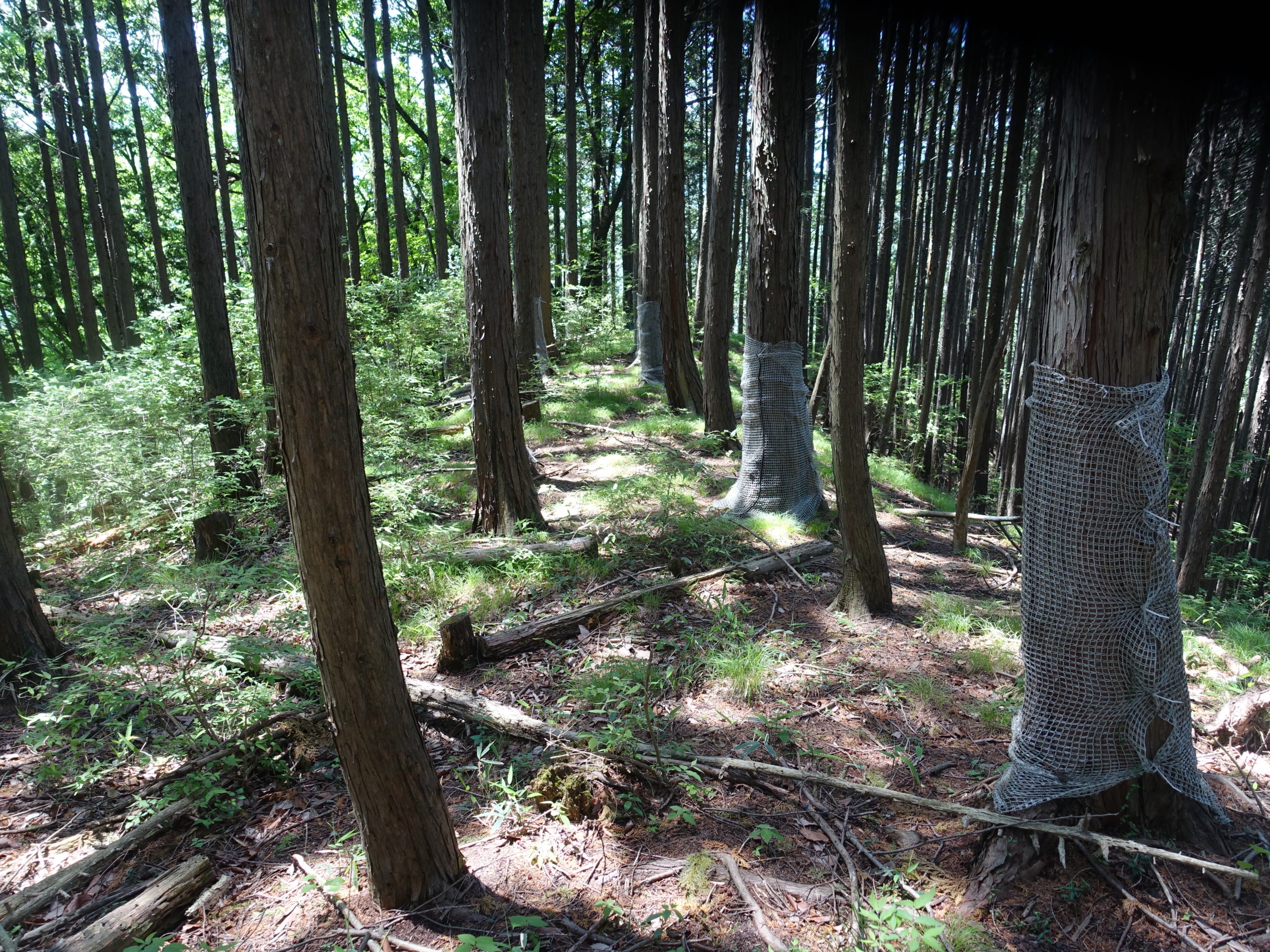 一帯はマーキングは無く、山名板も標高表示も何もなし。ひたすら小ピークを幾つも越えるのみだ。ピークの下りでは、気を抜くと間違う、一度間違いました。今回も当然誰とも逢わず、鹿がやけに人馴れしていて近くまで接近できた。暑さは気にならず、色々な事を考えながら、黙々と歩くのみだ。次々出てくる小ピークをこなし、ようやく最後のピーク、戸叶山が見えてきた。植林が邪魔し写真にはならない。最後の登りを頑張って山頂着。