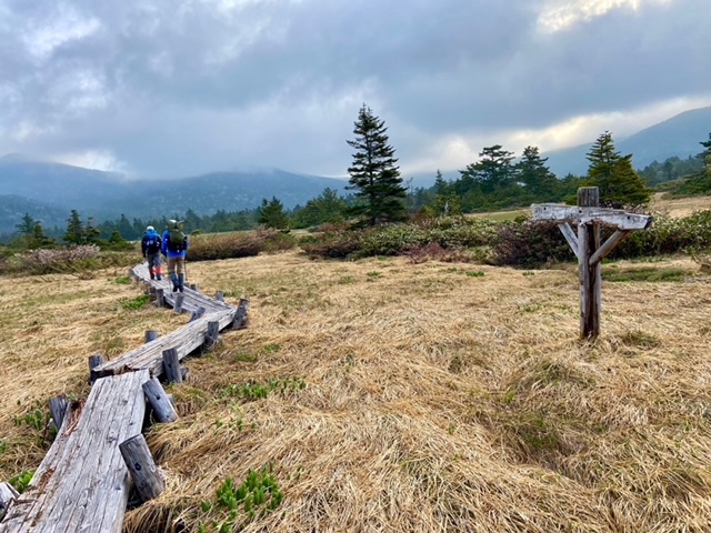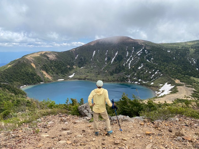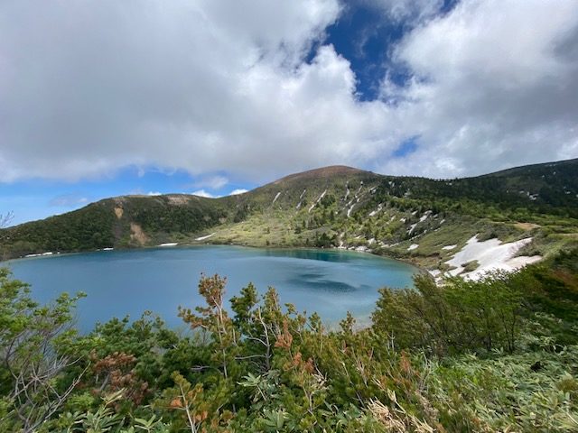 <詳細報告>25日小山を7時に出発し、不動沢登山口には10時15分頃到着。すでに登山者用駐車場は一杯で、観光客用駐車場に停めた。トイレも完備されている。登山者用駐車場近くの登山口より開始。晴れておりこの頃は暑かった。なだらかな登りなのであまり疲れはしないが、高度はなかなか上がらない。慶應吾妻山荘のカフェはclosedであった。硯石とあるが、どこに石があるのか不明。徐々にハイマツなどの低い灌木になり、五色沼分岐へ。魔女の瞳が美しい。このあたりから雲がかなり多くなり、風もあるので寒い。登山者はすれ違った1組のほかこの後到着する家形山で4人パーティーくらいで少なかった。家形山からは一切経山をバックに魔女の瞳が見えて素晴らしい。寒いので長居せずに下山。分岐に戻り一切経山へ。爆風で山頂ではダウンジャケットなしではいられなかった。写真をすぐ撮り、すぐさま酸ガ平避難小屋を目指した。ザレて歩きにくい登山道でそのうちに鎌沼が見えてくる。五色沼と違って物寂しい雰囲気を醸し出していた。酸ガ平避難小屋では数人の登山客が休んでいて、中に一人エビスビールとミックスナッツを頬張る、美しい登山者おり、美味しそうですねと話しかけると、はいと満面の笑顔であった。この避難小屋はほとんど木の床がなくほとんど土間なので、泊まるには都合が悪い小屋であった。トイレがあるのはありがたく、軽食を食べて休んだ後、鎌沼に出た。鎌沼近傍は木道で、メンバーの一人は鬼怒沼に似てるねと言っていた。寒いのでダウンジャケットを着たままで進んだ。鎌沼から谷地平避難小屋までは悪路で残雪あり、登山道が水浸しになっているところあり、ゆっくりしか進めない。ヤマレコでも最悪の道と表現されていたのもうなづけた。そのうちに水芭蕉が咲いている木道に出て、しばらく行くと綺麗な沢があり、イワナやヤマメが泳いでいた。避難小屋は三角屋根のかっこいいこやで、中に一人男性ソロの方が先客でいた。持ってきたサーロインステーキを焼き始め、シーフード入りトマトガーリック味のパスタを食べながら宴会。20時頃就寝する前に80年代ポップスのイントロクイズが始まり、ソロの方もノリノリでクイズに参加、特に松田聖子は最も早く歌い始めた。この方は那須から来た、なんと私ともう一人のメンバーと同じ昭和42年生まれであった。翌日谷地平に朝ゆくとやはり尾瀬や鬼怒沼のような雰囲気があり素晴らしい。避難小屋に戻り前日と同じ道を辿った。天気予報では日曜の方が良くなかったのだが、この日は晴れていたが寒いのは同じであった。一切経山は前日同様爆風。そこから駱駝山に湯買う予定であったが、侵入禁止のロープが張られており、諦めて前日と同様のルートを辿った。数ヶ月前から両足の小指の付け根が腫脹して小指が薬指の方に内反して下りで痛みがかなりあり、それを我慢してようやく登山口へ。翌日整形外科の医師に診てもらったら、パニオネットという病名であることが判明し、足の横アーチが崩れると小指に荷重がかかりそうなるのだそうで、足幅より細い登山靴を履き続けたのも一因と思われた。地道にアーチを戻すマッサージをする他なく、幅の広い登山靴を買いなおす必要あり諭吉は飛ぶ。車で浄土平に移動し、吾妻小富士を周回する。浄土平は駐車場が一杯になるほどの賑わいで、ここでは食事はできないと判断し、福島西インター付近のラーメン成川というところが評価が高いので、そこへ向かうと待たされはしたが、入って食べた喜多方ラーメンの美味しかったこと。満足して帰路に着いたのでした。