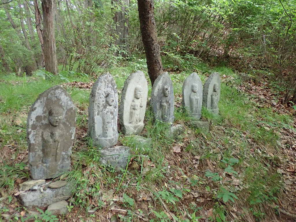 桜山からは先頭を交替しながら進む。このコースは尾根の分岐が多く、主稜線も変化が多いので楽しいコースだ。適度に簡単な岩場もあってスパイスが効いている。船越山分岐ピークの北で尾根は西に方向を変え、林山でまた北西に変える。林山から北へ少し下ったところに蛙岩があり、その上に出た時に少し雨が降って来たがすぐ止んだ。「カエルの面に小便」だ。六地蔵を見て、登り返したピークで一休みしていると、よこさかさんがスパッツにヒルが付いているのを見つけた。全部で3匹。どこで付けて来たのか不明だが地蔵さんの辺りかもしれない。金原山で集合写真を撮って峠へ下山した。スパッツを外すとヒルがいるいる。きみこさんは少し吸い付かれていた。だが、70歳二人には何故かヒルは近づいてこなかった。