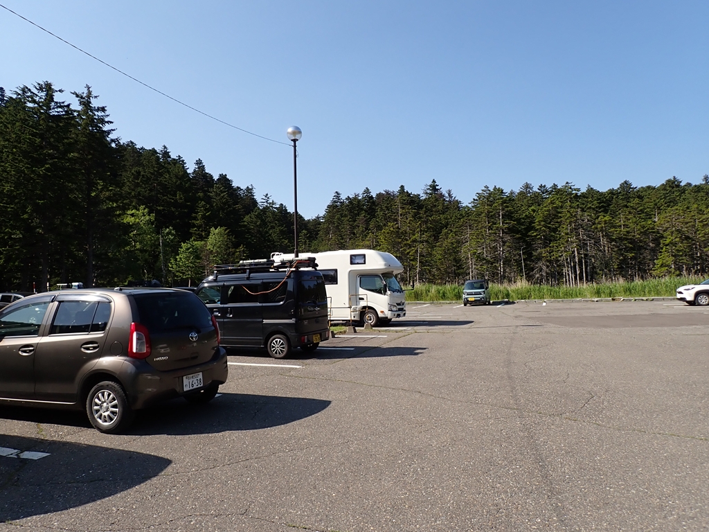 斜里町のキャンプ場から2時間強掛けて雌阿寒岳登山口の駐車場に着いた。既に10台ぐらい駐車している。朝から日差しが強い。