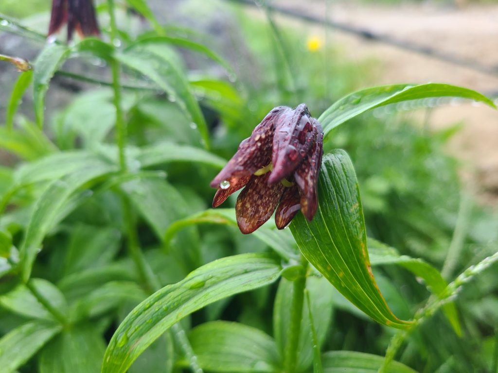 この週末は朳差岳を計画したが、東北の天気が悪い。直前まで行くかどうか行き先をどうするか悩み、りょうへいが雲ノ平にいる友達のところへ行くという計画に乗り双六岳へ行くことにしました。メンバーは夫に振られ、前日のお誘いにも関わらず快諾してくれたAさん。一人ではやはり不安があったのでほっとしました。仕事が18時まででそれからバタバタと支度をし20時半田沼を出て新穂高温泉到着は1時を過ぎました。2時間ほど仮眠しまだ薄暗い4時半に出発。夫からわさび平までの林道で熊に会ったと聞いていたので熊鈴を鳴らしながら歩きました。最初はガスが多く涼しかったのですが、秩父沢あたりに来ると日が出てきて一気に暑くなりました。小池新道は登山道が整備されてとても歩きやすくなっています。それでも急登は辛く鏡平のかき氷を思い頑張って登りました。私は4度目で行程がわかるのでさほど辛くはなかったのですがAさんはかなりきつそうでした。鏡平でお待ちかねのかき氷を頼み涼みました。友は宇治金時を頼んだのですが、ベンチに来る途中餡が落ちてしまいショックを受けていました。頼めば乗せてくれたのにとりょうへいに言われましたが・・・そこから弓折乗越までは暑さの難所で汗が流れ喉も乾き休み休み登りました。稜線はお花畑でハクサンイチゲやシオガマ、イワギキョウ、クロユリ等々登山道両側に花が咲き双六小屋まで楽しませてくれました。小屋に着き外のベンチで休もうと思っていたら雨が降り出してしまい、受付をして部屋に入りました。しばらくして雨も上がったけれど、山頂へ行く気はなく談話室でツアーに参加してる方の話を聞いたり、外で景色を眺めながら休憩中の小屋番さんとお話して過ごしました。睡眠不足のため夕食後は布団に入りすぐに眠ってしまいました。流星群の星も見られたようですが、そんな余裕はありませんでした。