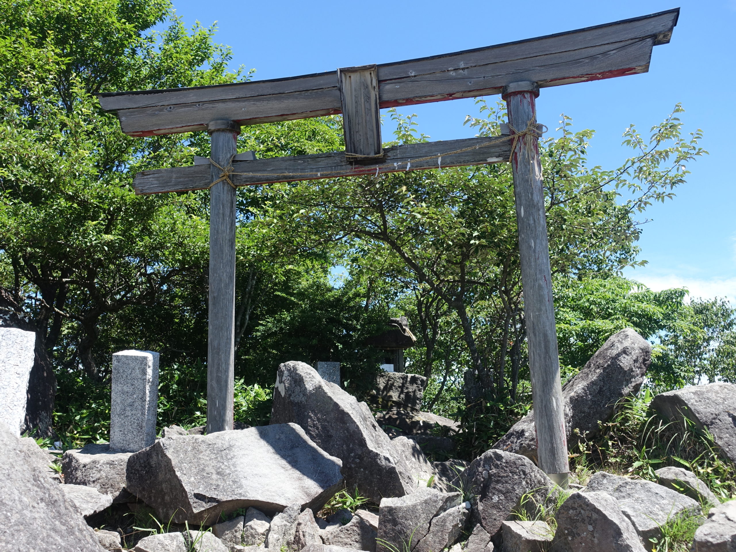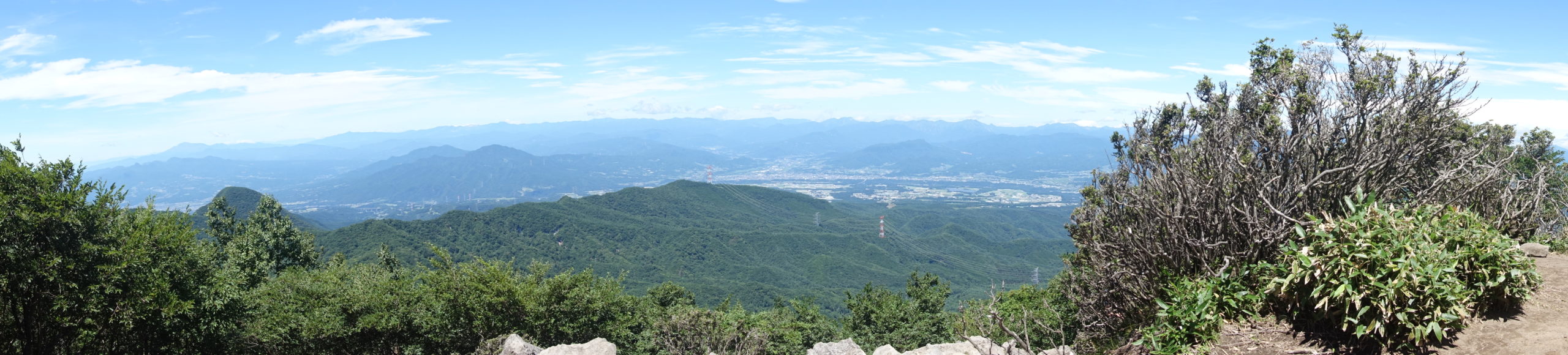 マーキングが多く道間違いはないが、とにかく笹がうるさい。いつ熊と遭遇するかと思われる環境で、鈴と笛と咳払いで対応した。前日、熊除けスプレーを買いに何軒か見に行ったが、在庫は無かった。暑さが問題かと思われたが(佐野で41℃) 朝の内は涼しい風もあり助かったが、昼の日差しはそれなりにきつい。公園からのルートは誰一人逢わないが、稜線に上がると結構いました。