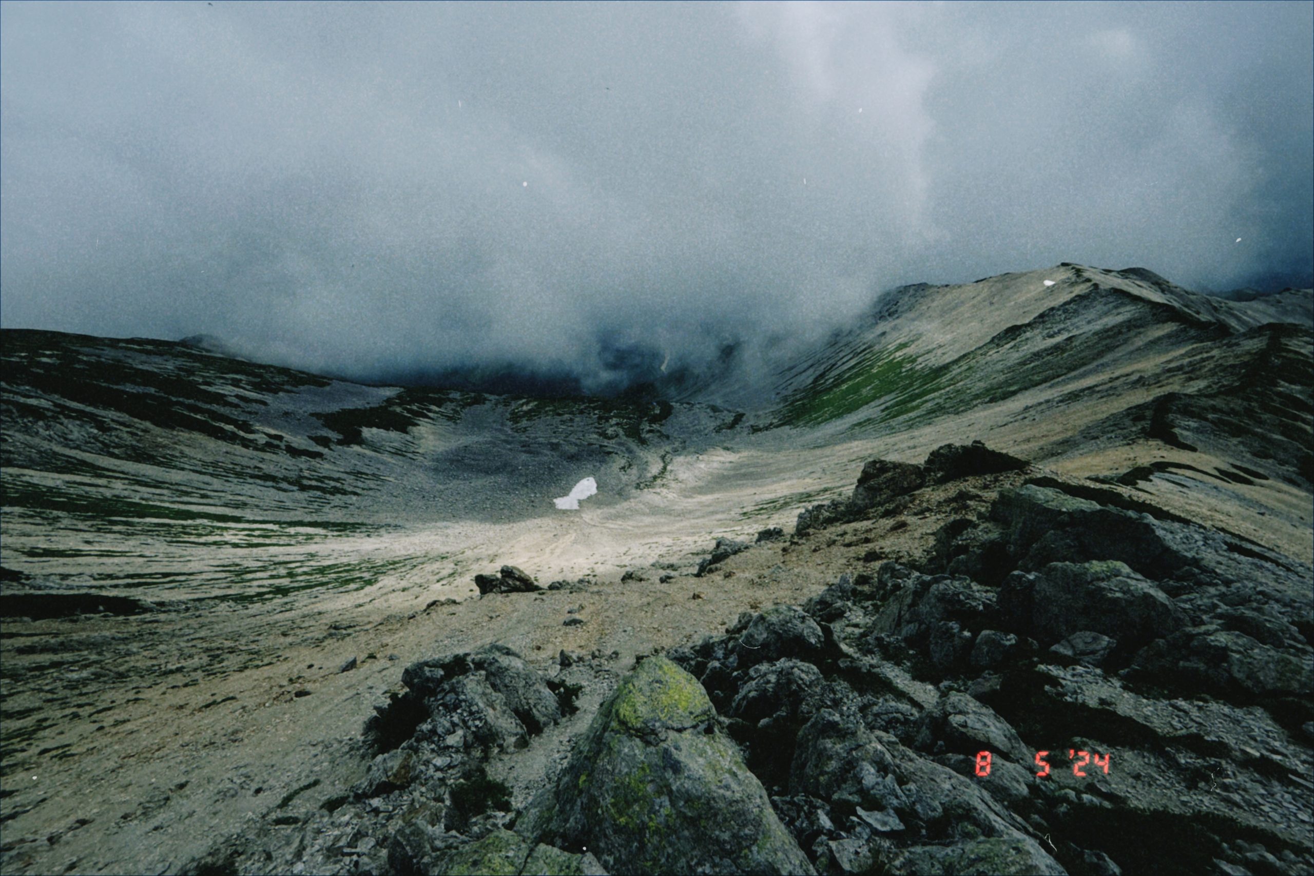 3日目 スゴ乗越小屋を出て北薬師岳への登りをゆっくりと登るガスが出て展望が効かないが暑くないのは助かる。ゴロゴロした巨岩が多く足元が厳しい。北薬師を越えたあたりから空が晴れてきた。ここから薬師山荘まで下り基調の縦走路は素晴らしかった。薬師岳山頂では1時間ほど滞在して黒部五郎岳 水晶岳 鷲羽岳 槍ヶ岳など大パノマラを楽しんだ。
