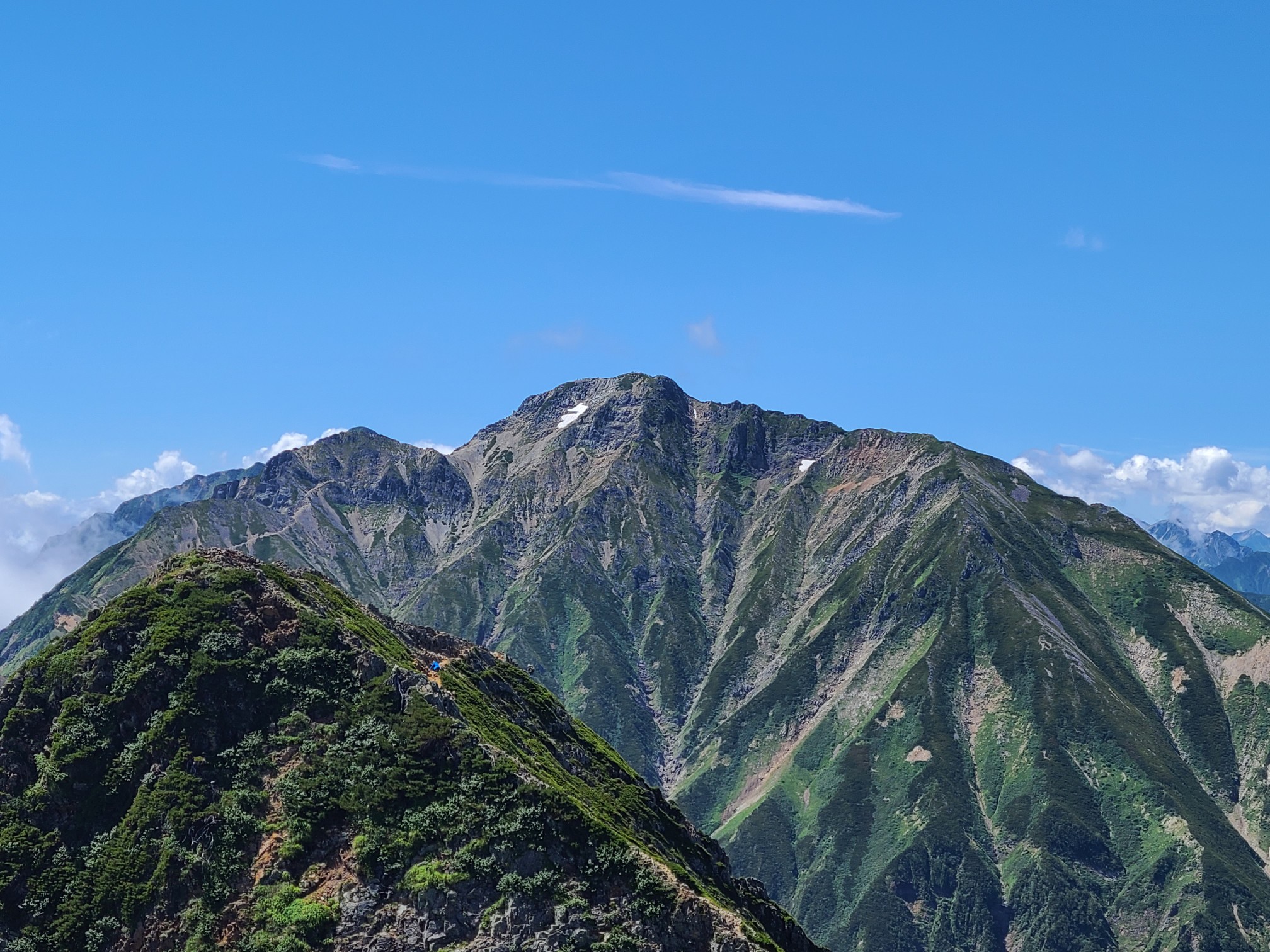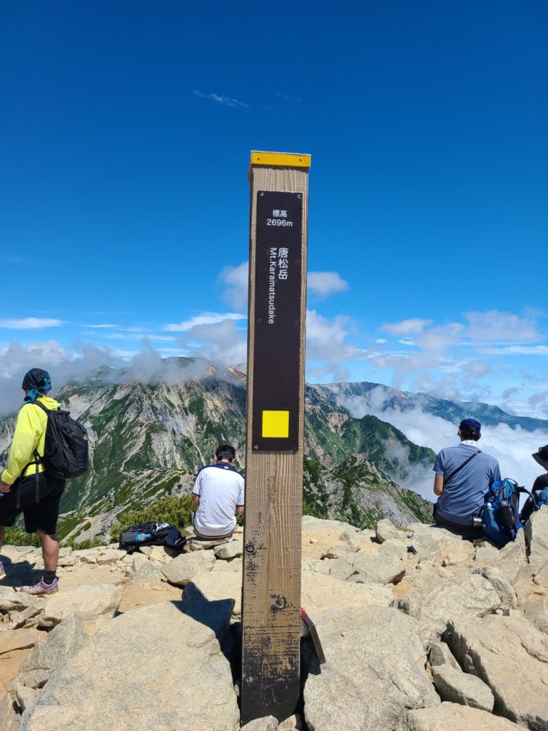 12日6:45八方ゴンドラリフトー7:30八方池山荘ー8:15八方池ー9:30丸山ケルンー10:45唐松岳山頂11:20-11:35頂上山荘ー13:40八方池山荘下山ー13日1:30帰宅