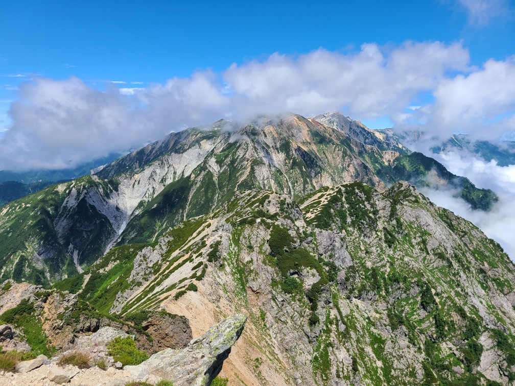 ぎりぎりまで行くか行かないか迷いました。りょうへいの計画は八方から入って15日に新穂高へ下山なので送ってほしいとのこと。お盆明けの天気もわからないので風邪症状も残る中決行しました。出発は23時になってしまい途中のSAで仮眠。6時前に駐車場に着きました。無料駐車場に停めようと思ったのですがゴンドラ駅前まで行ってみると空いていたので(1000円)そこに停めました。チケット売り場にはもうすでに20人くらい並んでいました。ゴンドラは往復3300円(セブンで割引券2950円購入)ゴンドラリフトを乗り継いで八方池山荘でトイレを済ませて別れました。お天気も良く多くの人が続々と登っていきます。久々のおひとり様山行。自分のペースで登りました。たくさんの高山植物と青空と雲海、壮大な白馬三山に鹿島槍と五竜岳、無理して来たかいがありました。りょうへいが小6の時に五竜山荘泊りで縦走したときは山頂はガスの中で何も見えなかったけれど、今回は最高の天気と展望で山頂でのんびり過ごしました。休んでいるときりょうへいから連絡が入り体調がよくないので縦走はせずに遠見尾根を降りるとのこと。下山してみみずくの湯で汗を流し時間調整をしてエスカルプラザへ向かいました。今回もほぼ同じ時間に合流。高速の休日割引がないので休み休み時間調整して深夜割の時間帯に帰宅しました。