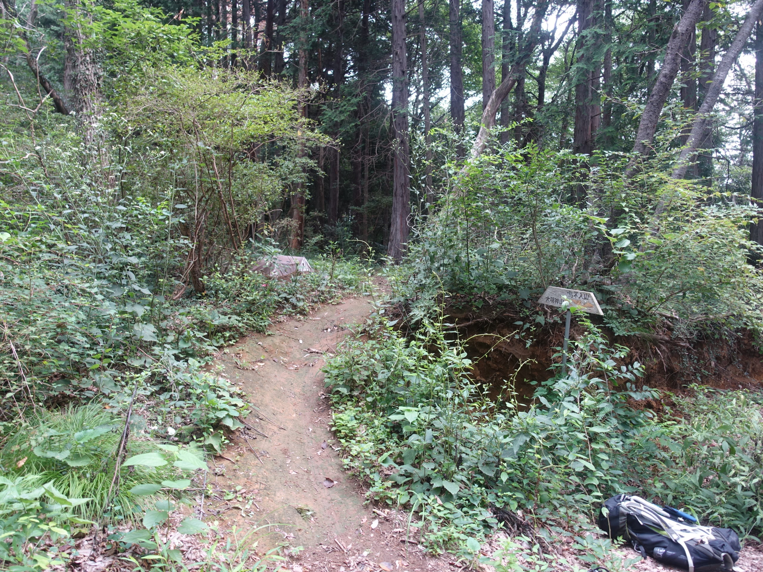 林道の駐車地に戻り、このまま帰るのは忍びないので、様子見に馬不入を目指しました。こちらもやはり蜘蛛の巣です。何とか根性で山頂まで行けて2つのピークともピストンですが、ピークを踏めて良かったです。低山の夏、あまり歩かれてないルートは予想外の問題が出て難しいです、参考にしてください。帰りは近くの岩船運動公園の風呂を初めて使いましたが、@210と安く良かったです。