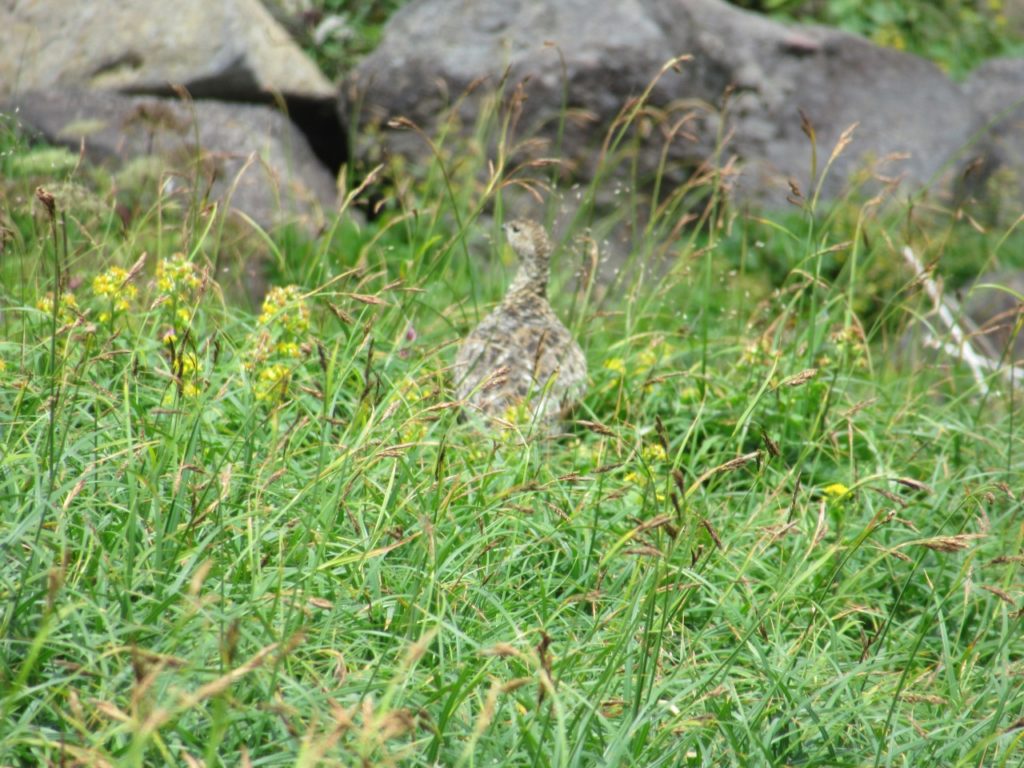 大休止後下山、途中肩の小屋付近のお花畑では久しぶりに雷鳥に出会えました。まだ時間も早いので富士見岳に立ち寄り、畳平12時発のバスで戻りました。乗鞍高原温泉 湯けむり館の硫黄泉に浸かり、蕎麦を食し、渋滞も無く帰宅、涼しい高所で生き返りました。