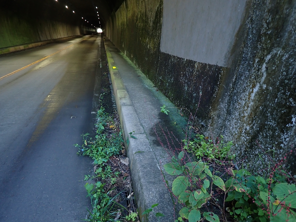 猪子トンネルを歩行するのは不安があったが、割と簡単に通過出来た。歩道は幅が50cmぐらいで狭くガードも無いので交通量が多いと怖いだろうが、幸い私の通行中には車は数台しか通らなかった。ヘッドランプを点けたがランプ無しでも歩行には問題ない明るさだった。トンネルを出てすぐ右に折れて林道に入る。数分で山道の入口があった。標識もあるのでわかりやすい。入り口は急坂だが、10分で峠に着いた。