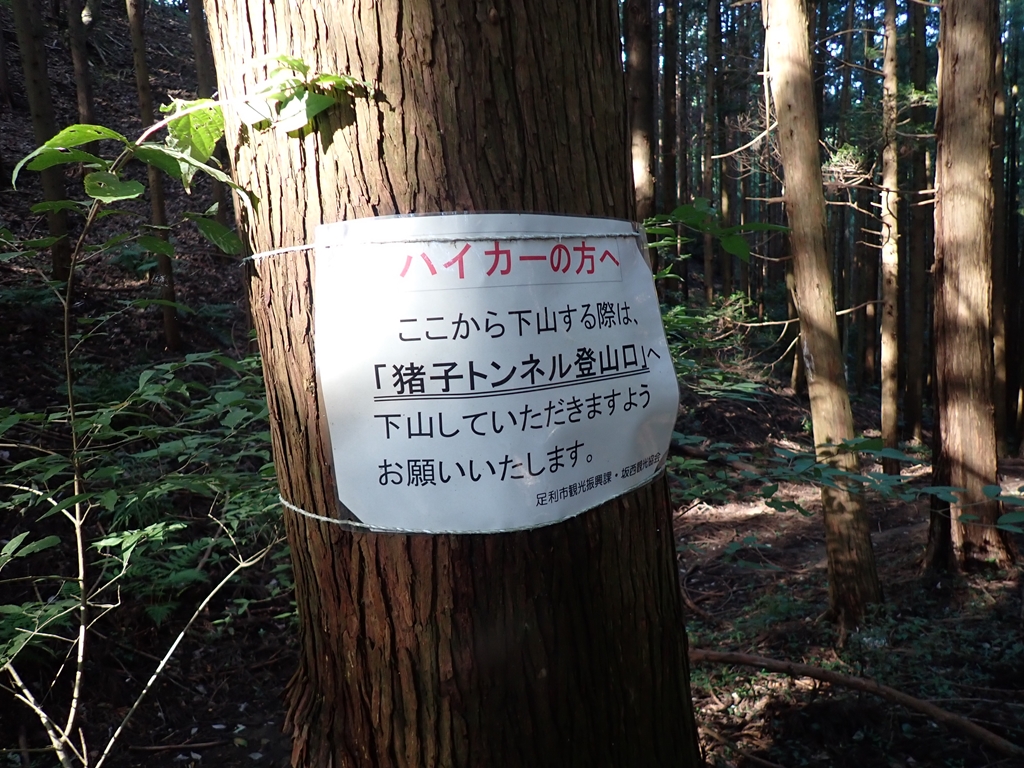前回撮るのを忘れたが、「ここから下山する際は、「猪子トンネル登山口」へ下山していただきますようお願いいたします。」という案内が張られていた。直接岩切方向の山道を通らないでくださいということらしい。トンネルに迂回すると10分ぐらいの遠回りになるが致し方ない。