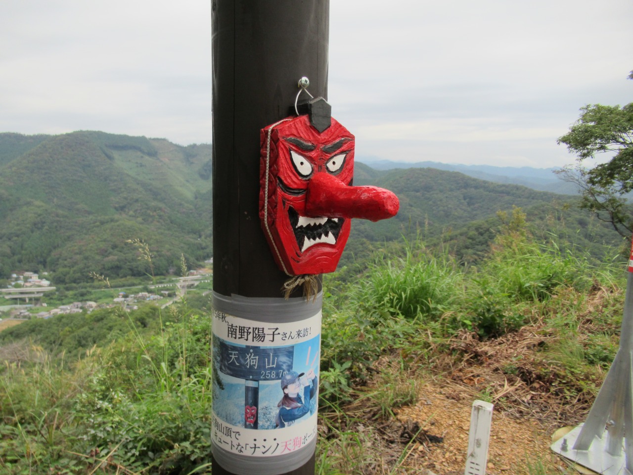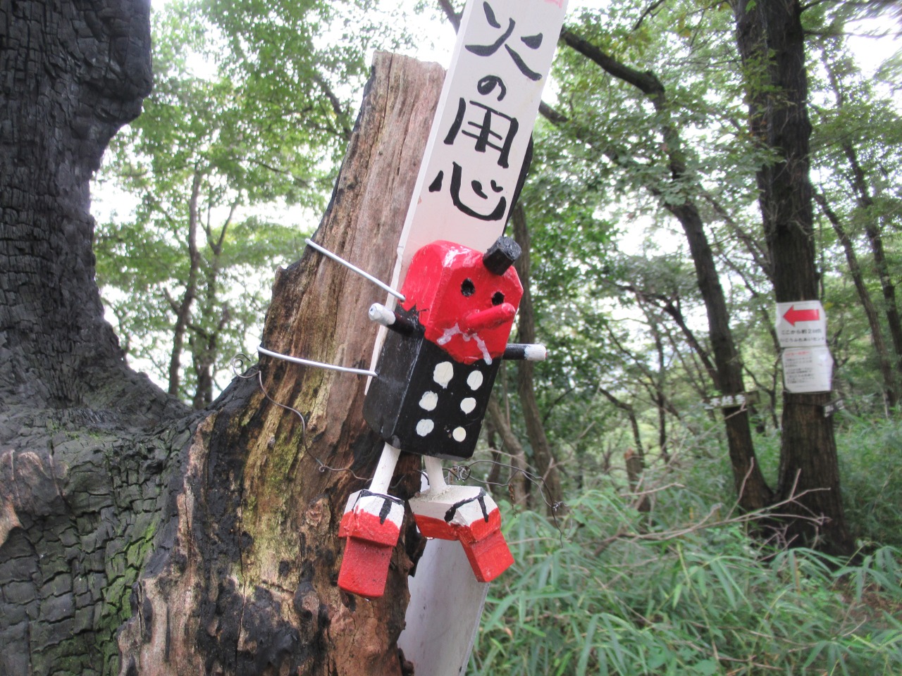 ここから天狗山を見ながら50m程下り登り返し、天狗岩のちょっとした鎖場を越えれば見晴らしの良い天狗山々頂です。3年前の山林火災の焼け跡が少し残り、木が少なく北側の展望が開け、先日訪れた大岩山の天空テラスも見えます。小休止後下山、天狗の面も幾つか祭られ”火の用心”の注意書き、富士見岩、つる山、須永山、観音山の小さなピークを越え常念寺に戻りました。富士見岩は展望が良く、澄んでいれば、都心、富士山が見えるのでしょう。