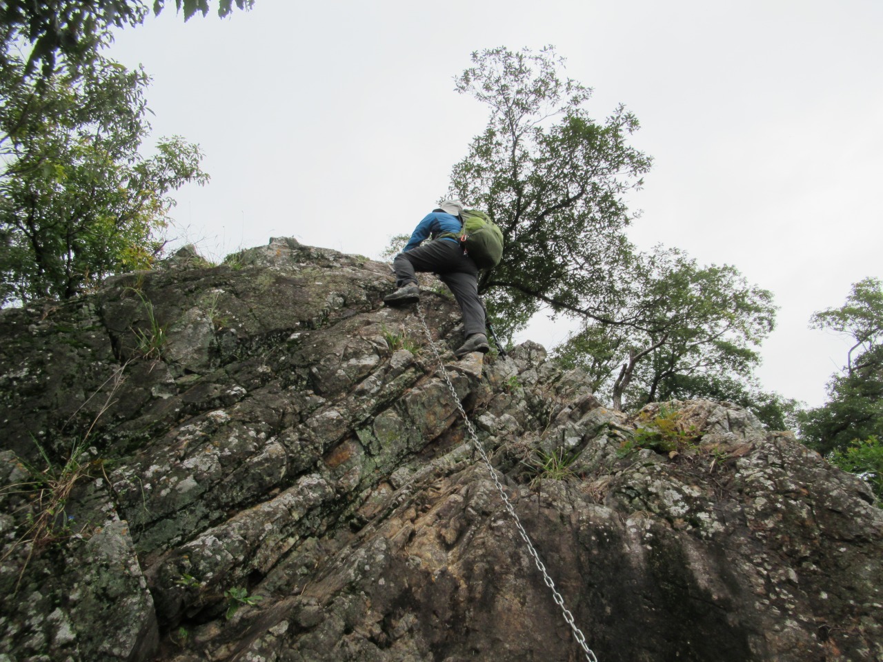 <詳細報告> このところ週末の天気は今一歩、遠くに出掛けて雨に降られるのも嫌なので、ぶらり近場の山に出掛けました。行程も短いので、朝はのんびり8時過ぎに自宅を出て、9時過ぎに起点の常念寺に到着、織姫神社まで車道を歩き登り始めます。気温は20℃前後ですが湿度が90%を超え蒸し蒸しし、汗も出ます。両崖山まで良く整備されたハイキングコースでハイカーもそれなりに出会います。山頂手前にクラウドファンディングで造られたというテラスからは足利市街地が望め、直ぐに山頂の足利城址跡に到着、山名板はその先のピークにありました。