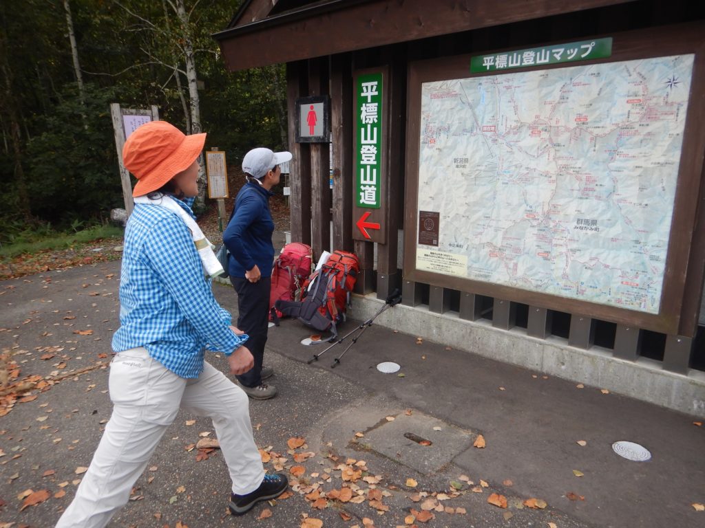 <詳細報告>10/11 晴れ稜線はガス(入山~平標山・仙ノ倉山~小屋泊) 天気の回復を待って、計画より一日遅れで小山を出発。早朝の駐車場はすでに2~30台のクルマで賑わっていました。