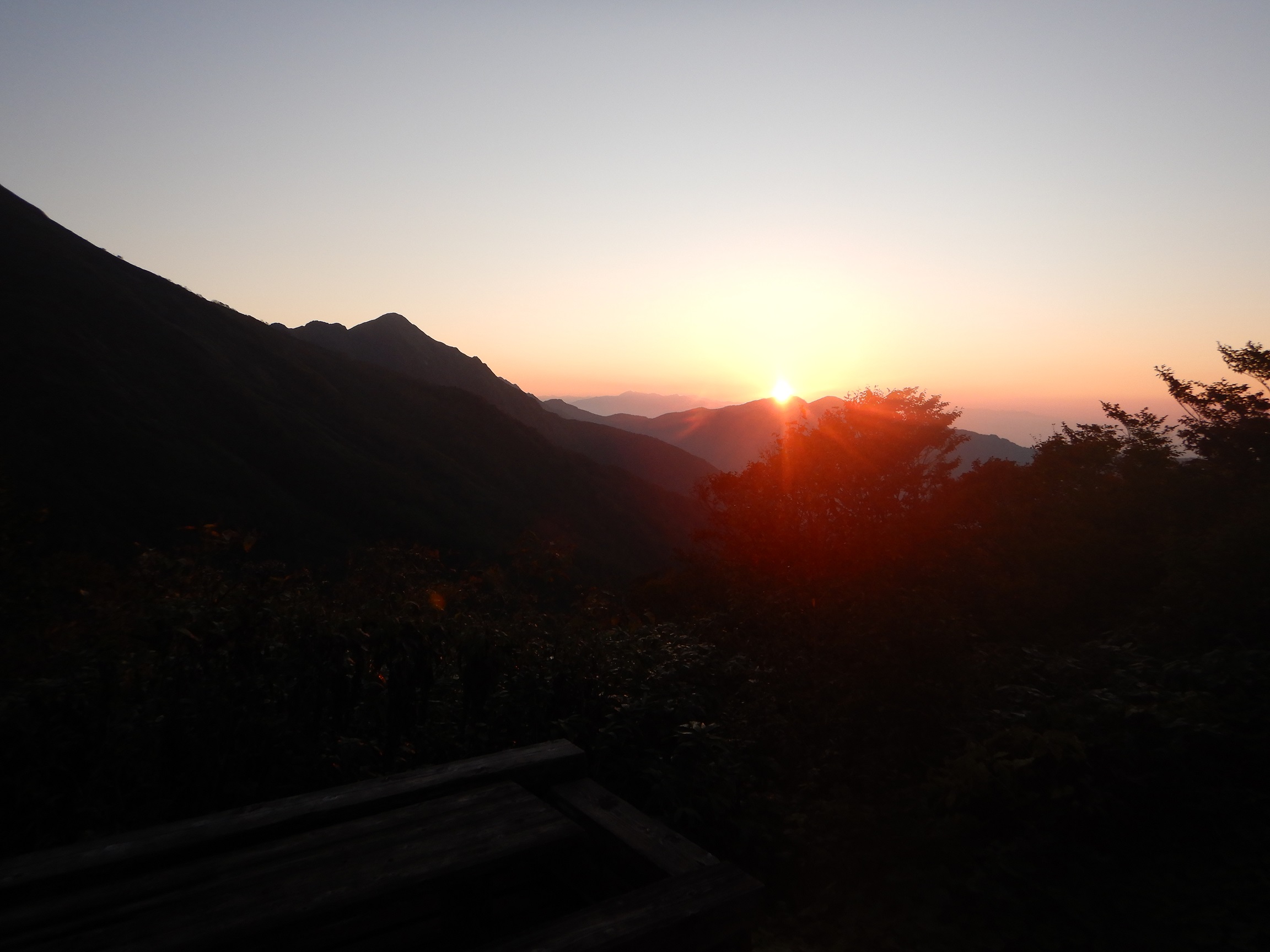 10/12 快晴のち晴れ(小屋~大源太山・三国山・三国峠~下山) 5時に起床。身支度を整え、朝食をとっていると窓から日の出が望めました。天気は快晴、小屋から昨日見えなかった平標山頂がはっきり望めました。昨夜は一晩中メンバーのひとりの独唱で、眠れなかったとの苦情あり。昨日観た紅葉でいい気分に浸っているなか、その気分を壊してしまったようでした。
