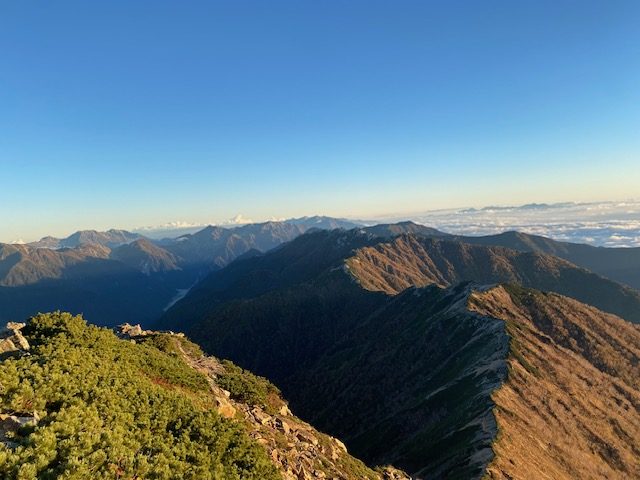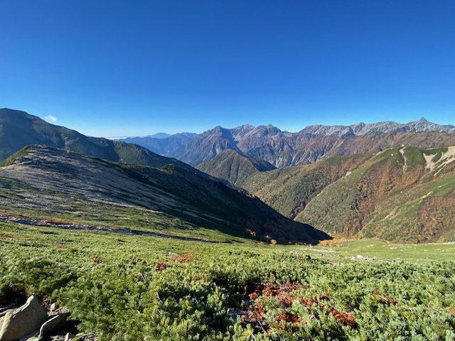 <概要>中房温泉より大天荘テント泊。予定では翌日蝶ヶ岳までのはずであったが、大天井岳の前日の冷たい雨でテントが凍りシュラフ他も濡れてしまったので、変更し、常念岳から三股に下山。