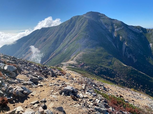 2日目 大天荘 06:00 – 06:09 大天井岳 – 06:24 大天荘- 08:58 常念小屋 – 10:34 分岐 – 11:20 前常念岳 – 14:01 三股駐車場