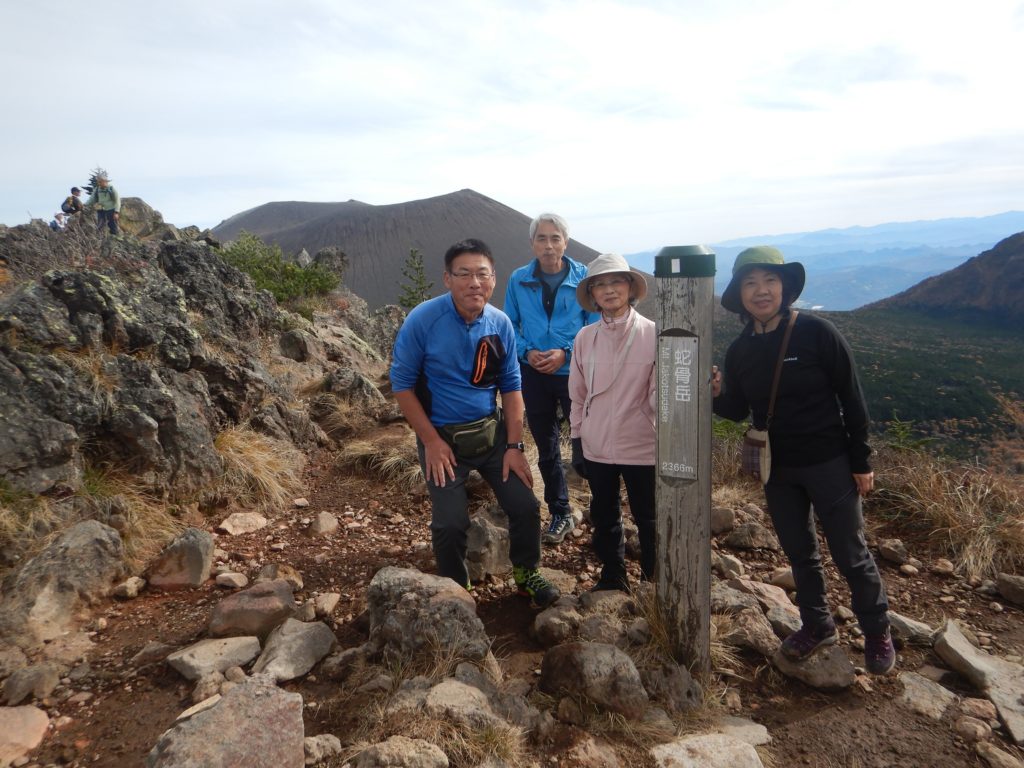 今回私たちはこの先の蛇骨岳のビュースポットまで足を延ばし、風もなく天気が良かったので、ここでお昼を取り写真タイム。この日はいつになく記念写真を撮っていました。下山は同じコースをたどり、トーミの頭から中コースを選び、車坂峠まで戻りました。帰りに峠のホテルの温泉に立ち寄り、八ヶ岳、富士山、穂高連峰を湯につかりながら眺めました。なんと贅沢なことでしょう。
