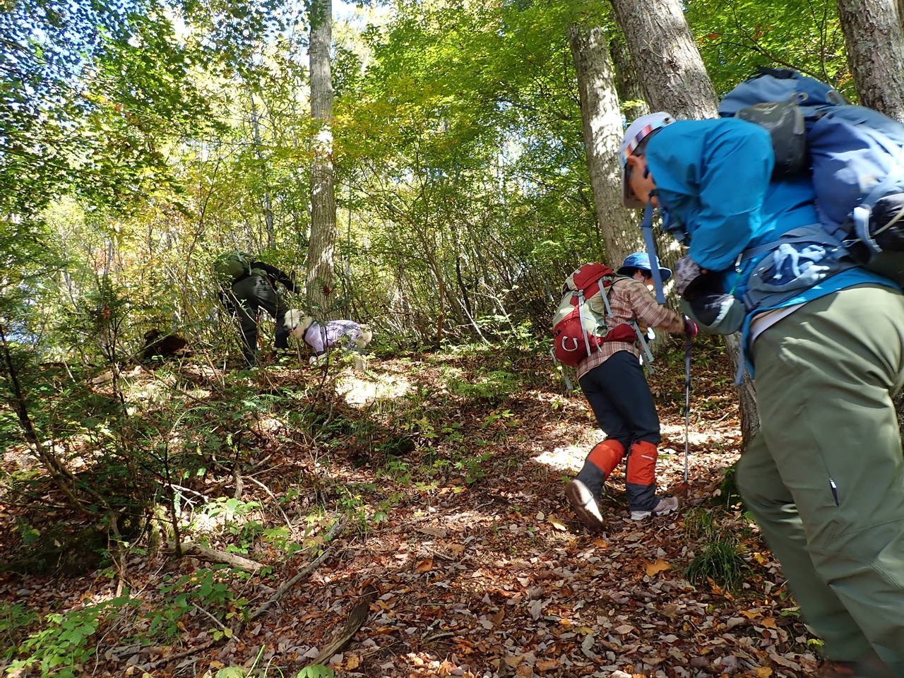 <詳細報告>鹿沼を6時過ぎに出発して、9:30頃に登山口横の駐車場に着いた。会津盆地では霧に包まれたような曇り空だったが、登山口に着くころには晴れていた。車窓から見えた山では紅葉は始まっているがまだ見頃には遠いように思えた。駐車場には2台停まっていた。